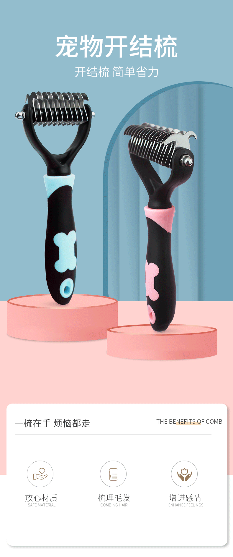 Hartley 애완 동물 오픈 매듭 갈퀴 빗 장발 고양이 개 빗 제모 매듭 미용 청소 용품 6스토어 가기