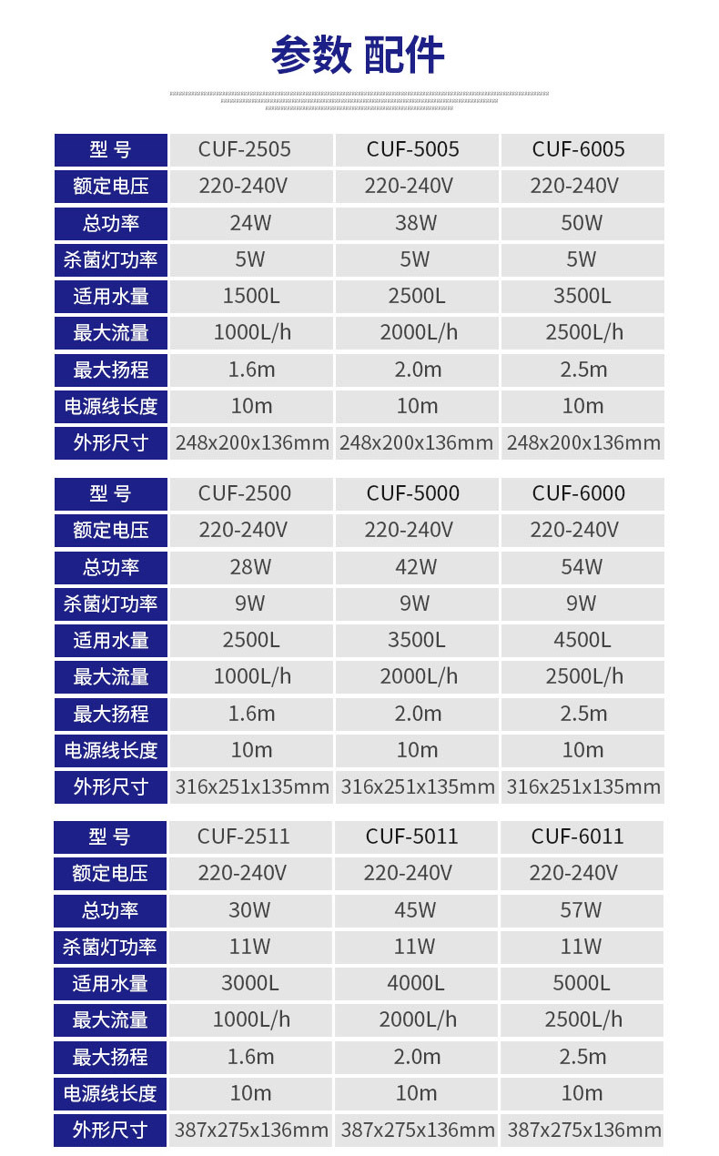 직접 판매 그리드 풀 CUF-UV 가변 주파수 워터 펌프 수중 펌프 수영장 조경 연못 물고기 연못 분수 펌프