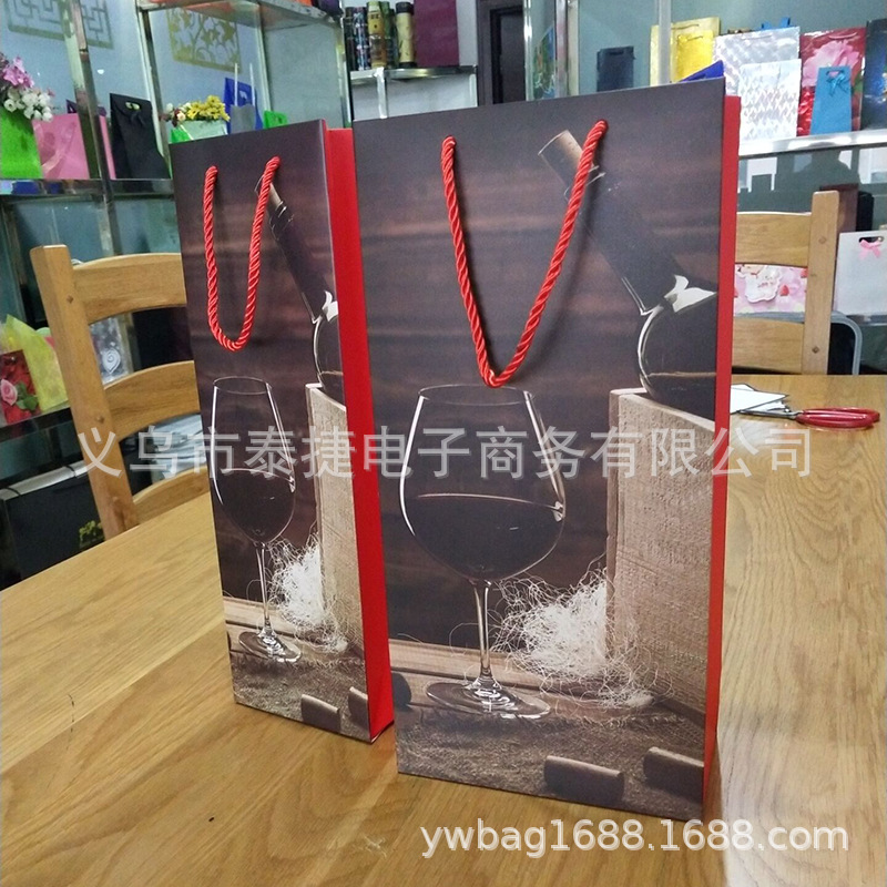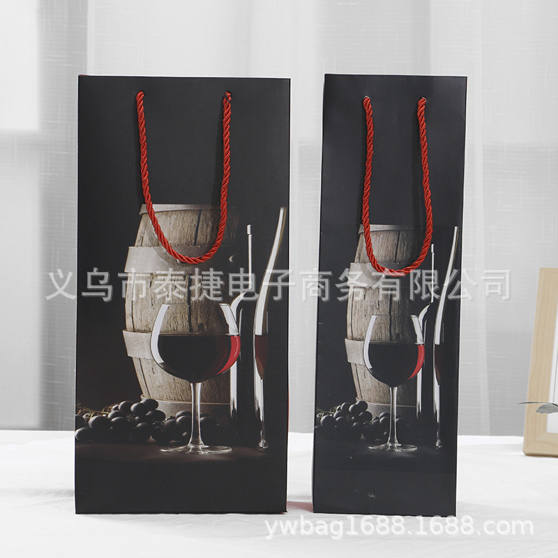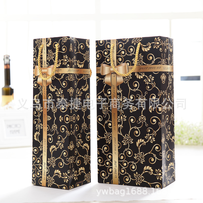 레드 와인 가방 선물 가방/더블 팩/2 병/종이 가방/고급 핸드백/견고/블랙 스팟 도매스토어 가기