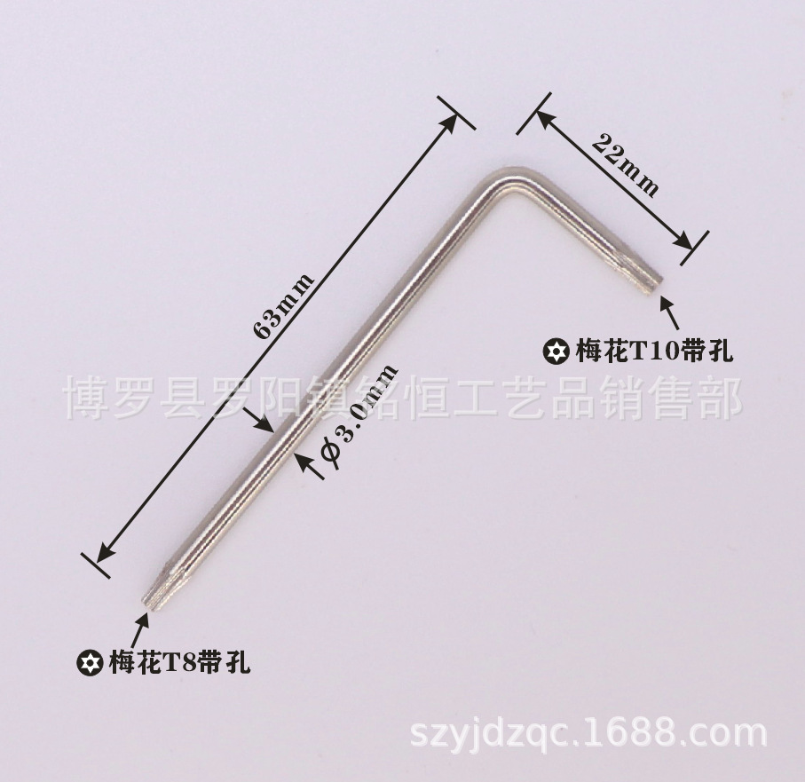 刀杆粗3mm,长边(T10梅花带孔)63MM,短边(T10梅花带孔)22MM