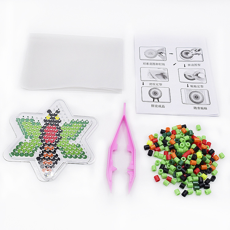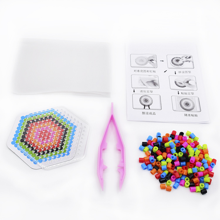 开始前必备材料:拼拼豆豆、模版(有普通方圆款和卡通款的)、助烫纸以及熨斗;