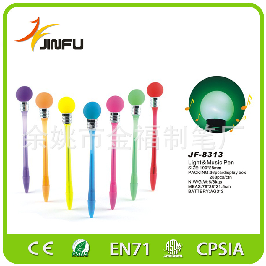 金福制笔厂 专业定制礼品笔,广告笔,塑料闪光笔,闪光音乐笔,节日礼品笔,金属灯笔,金属功能笔(激光,触屏,UV,磁性等),展会礼品笔,商务礼品笔 。特点:10多年的礼品笔经验,具有优秀的产品质量与合理的价格,可提供EN71,CE,RosH等证书,欢迎来电来函咨询!