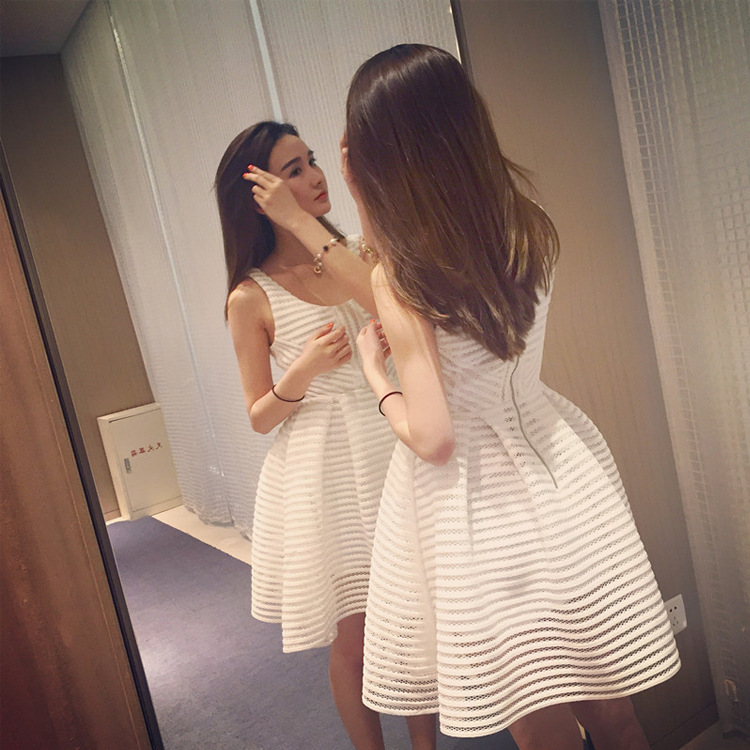 조끼 중공 드레스 여름 새로운 여성 드레스 레드 드레스 스커트 하이 웨스트 투투 스커트