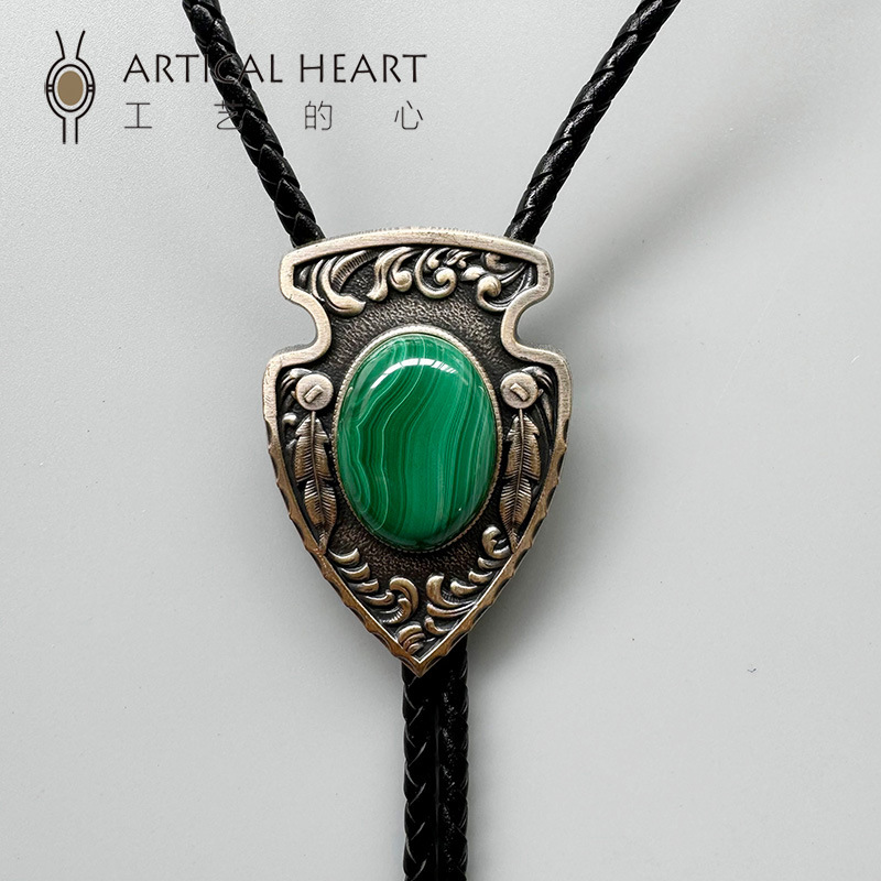"Indian Arrow" 오리지널 실버 도금 천연 말라카이트 볼로 타이 볼로 타이스토어 가기