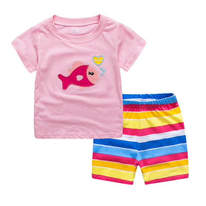 여름 소녀 소녀 아동복 만화 반팔 사랑 물고기 가정 옷 아기 속옷 잠옷 세트스토어 가기