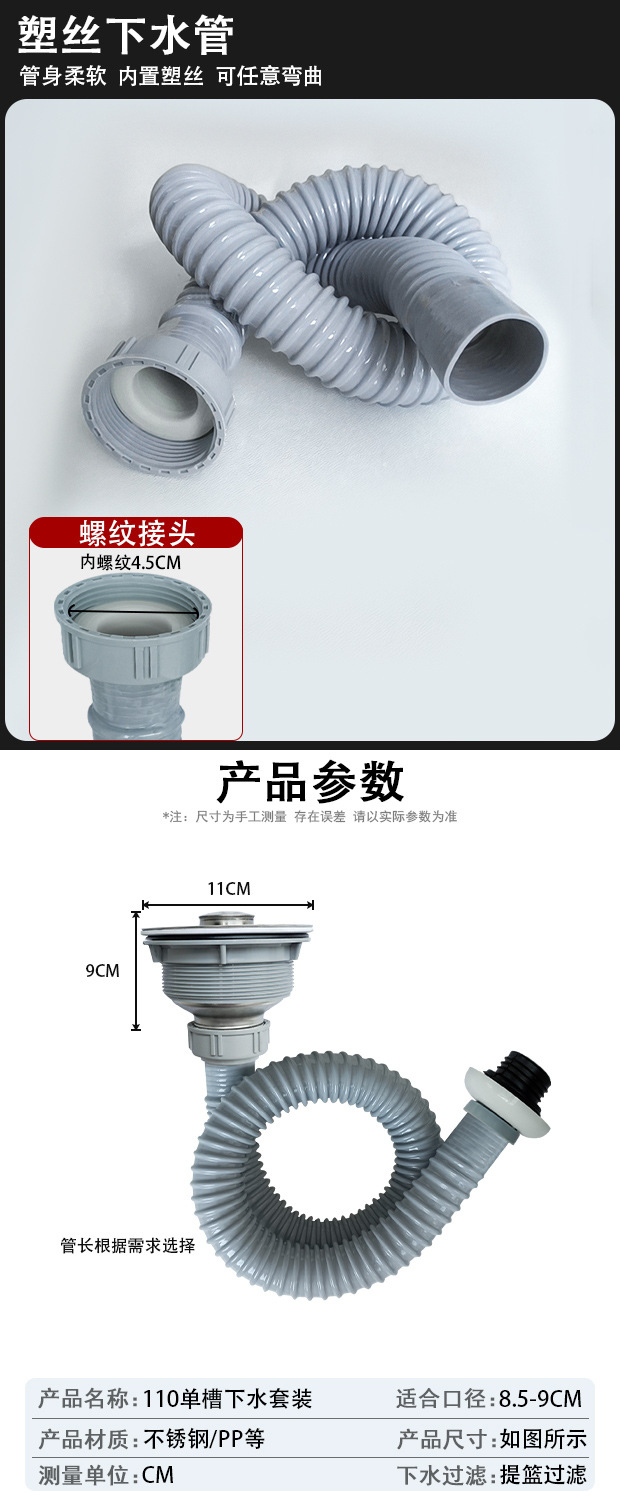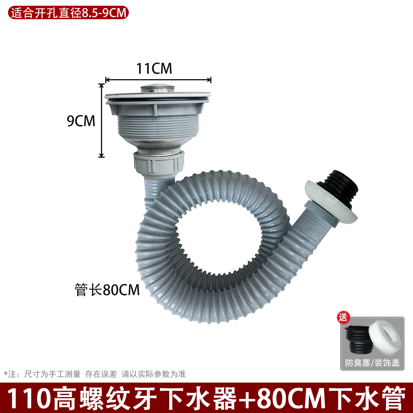 • 110 와이드 나사형 파이프 길이 80CM (냄새 방지 플러그 포함)