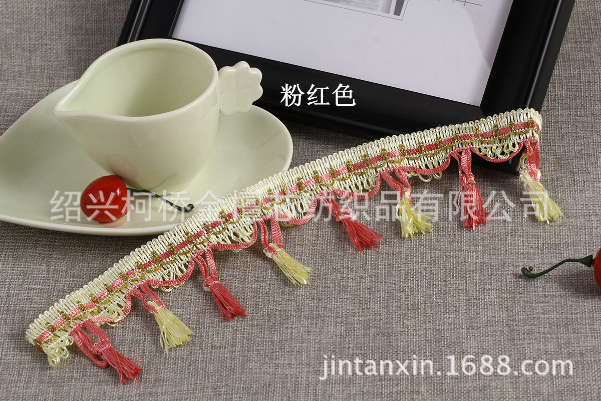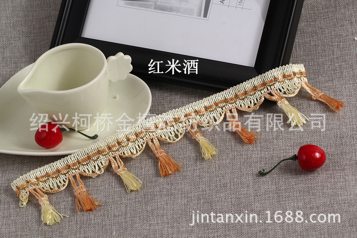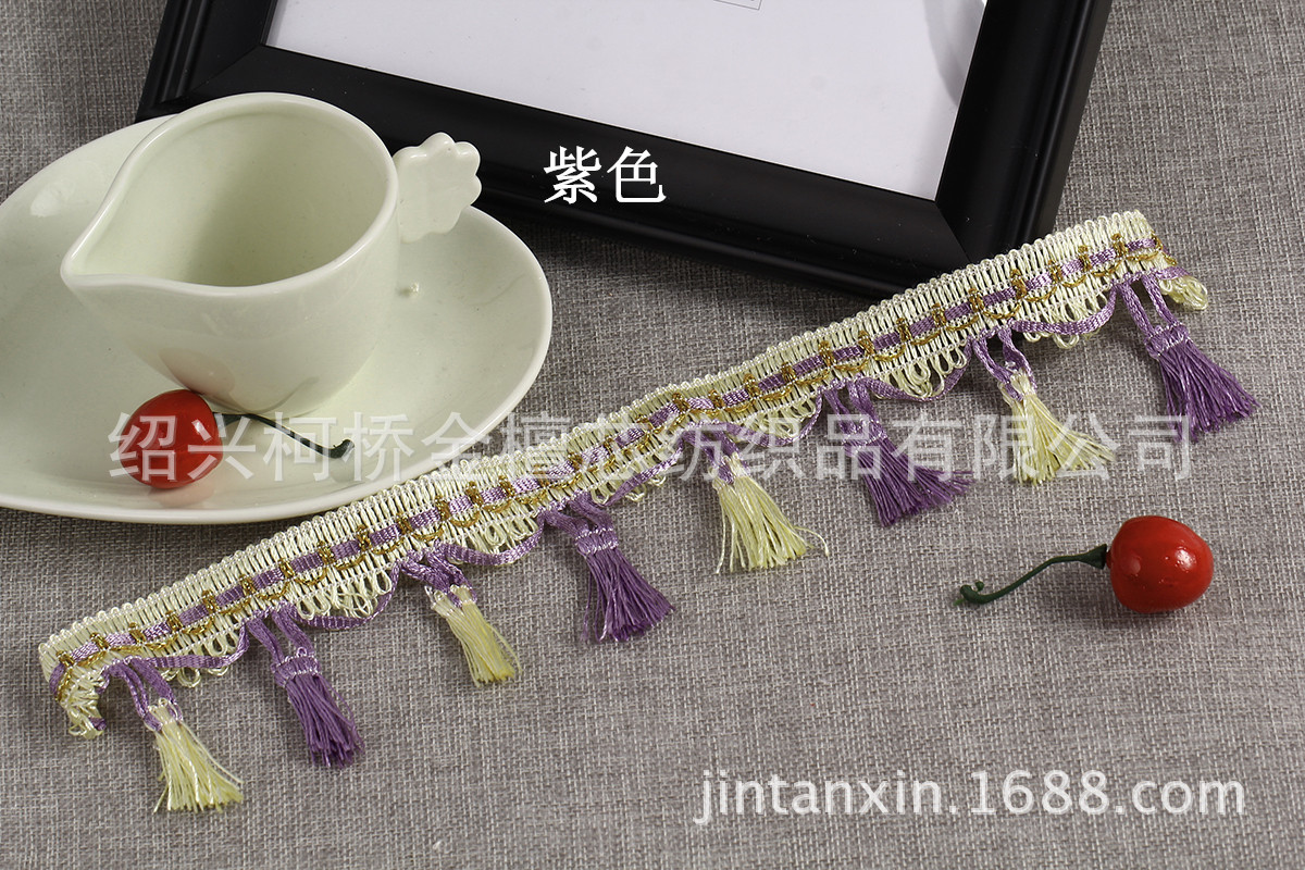 产品规格:一板14.5米左右,边宽2cm左右,总高度7cm左右,两个流苏间隔4.5cm左右,一米22个流苏。 产品特点:精致的做工,新颖的款式,丰富的色彩,用来装饰窗帘、靠垫、床垫等;令您的家居更添浪漫与温馨。