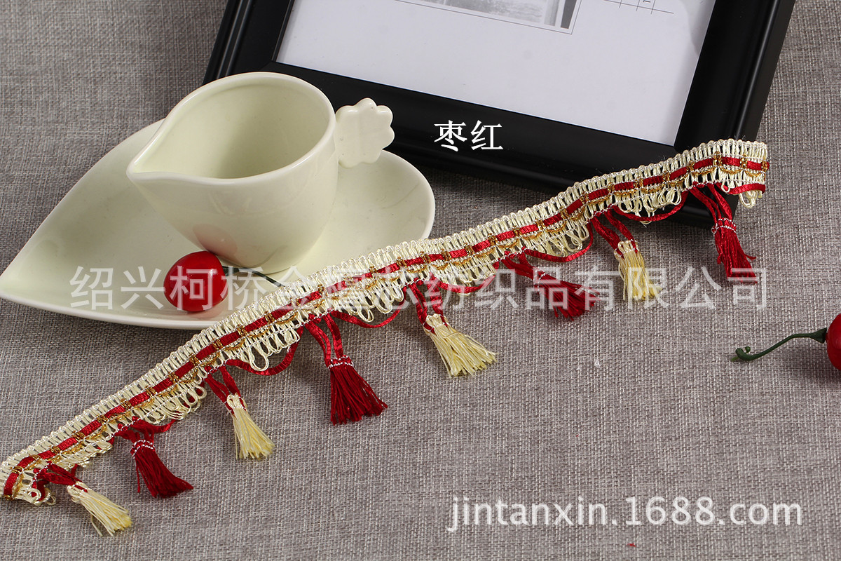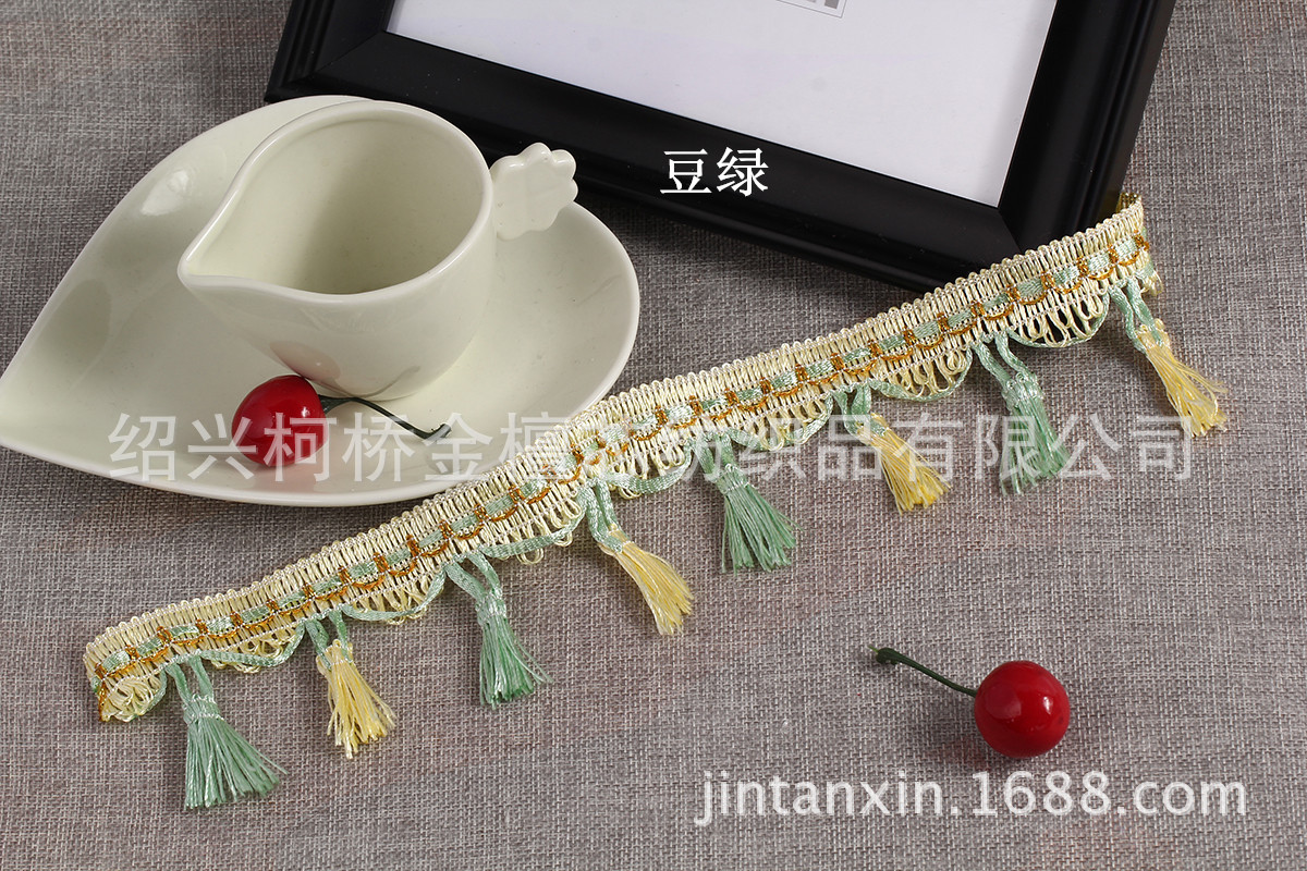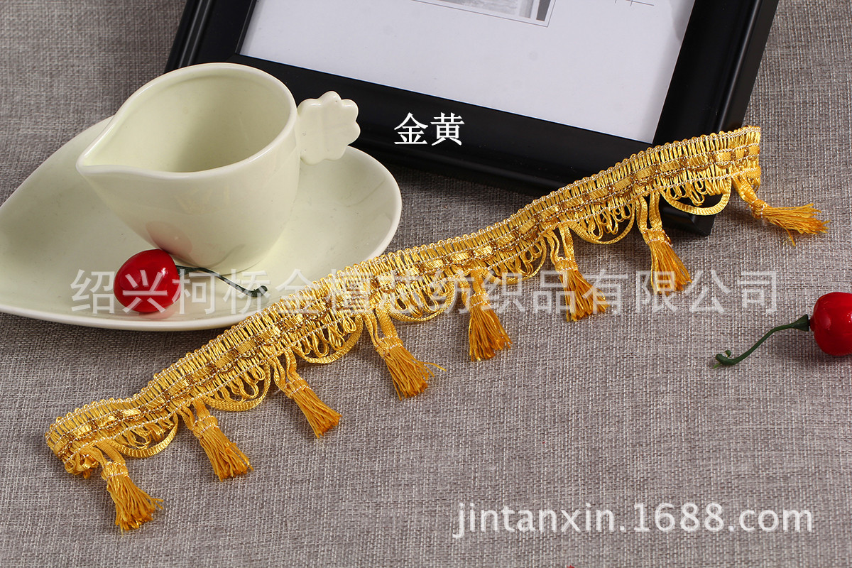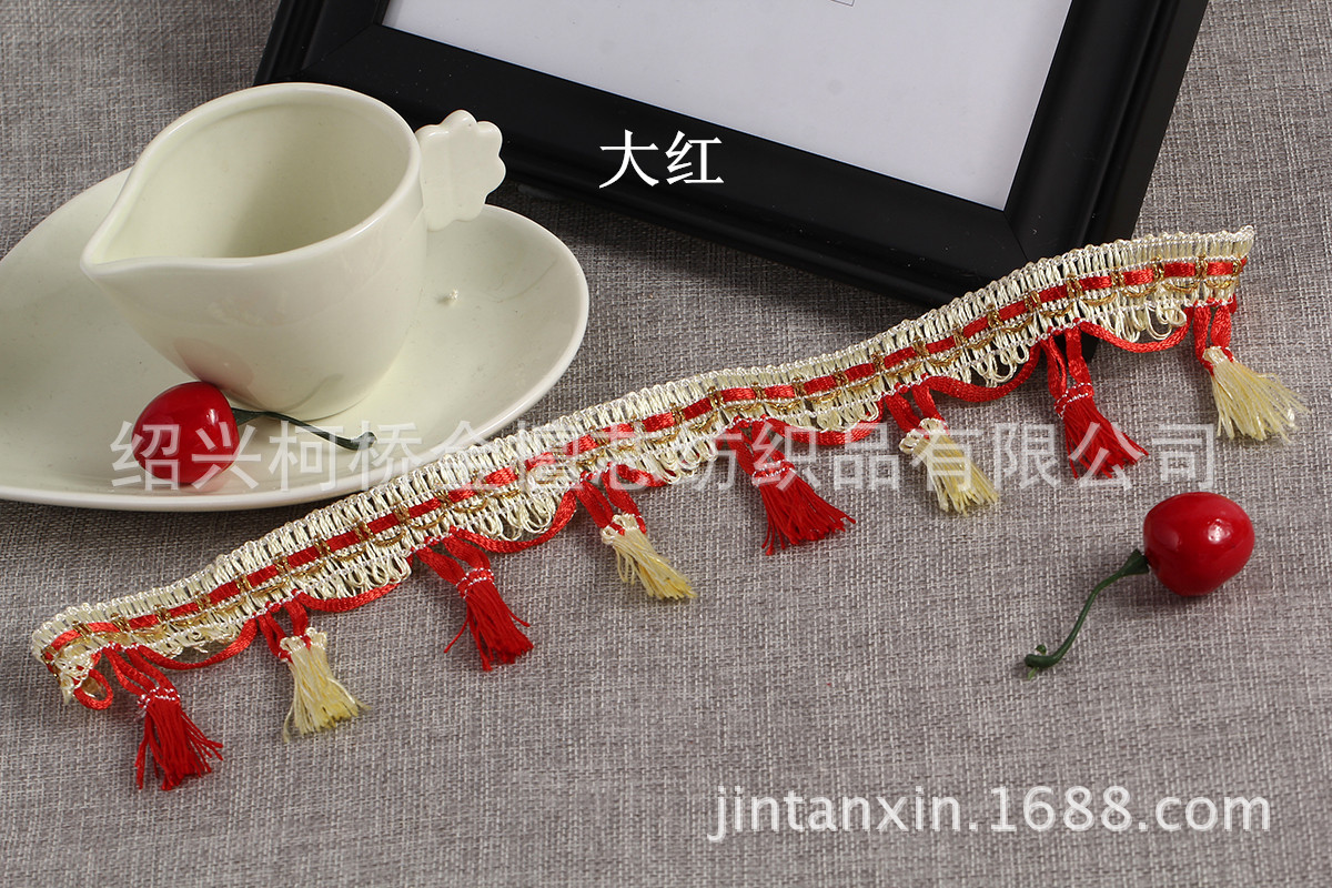 产品规格:一板14.5米左右,边宽2cm左右,总高度7cm左右,两个流苏间隔4.5cm左右,一米22个流苏。 产品特点:精致的做工,新颖的款式,丰富的色彩,用来装饰窗帘、靠垫、床垫等;令您的家居更添浪漫与温馨。
