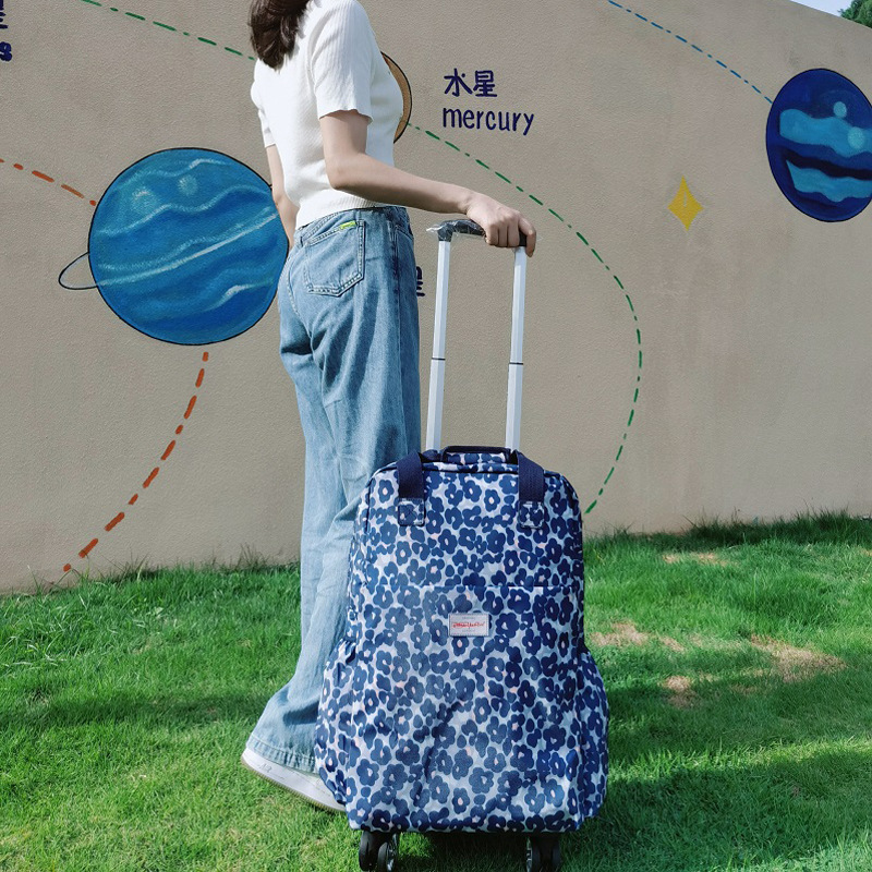 휴대용 휴대용 트롤리 백 여성용 범용 휠 인쇄 여행 수하물 트롤리 백 트롤리 케이스 16 인치 17 인치 20 인치스토어 가기