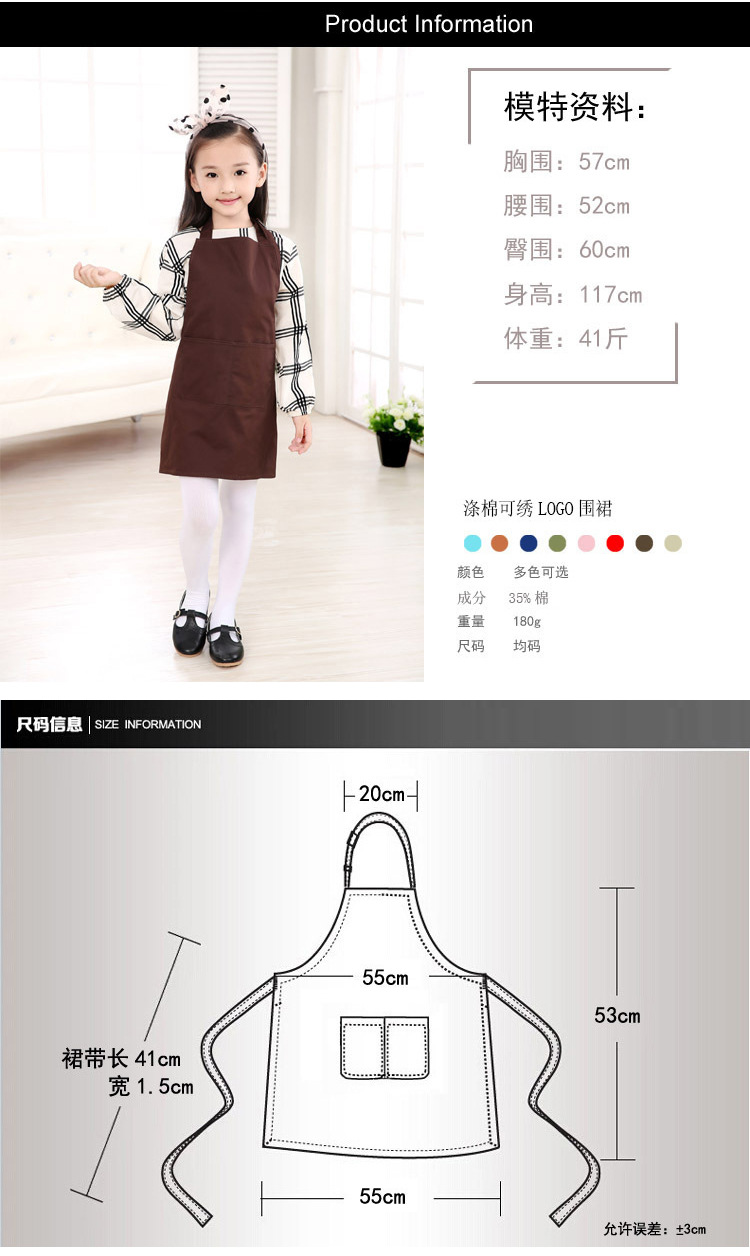 어린이 앞치마 맞춤형 로고 한국식 남성과 여성 아기 그림 민소매 단색 옷 유치원 아트 갤러리 앞치마스토어 가기