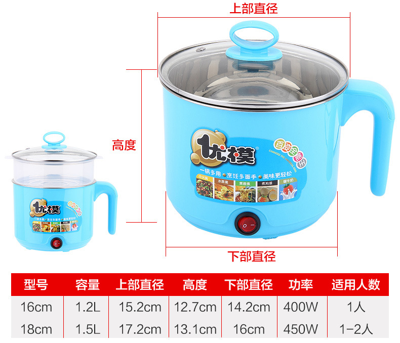 다기능 전기 냄비 학생 기숙사 전기 냄비 국물 냄비 전기 찜기 가정용 빠른 가열 소형 전기 냄비 찜 요리 냄비