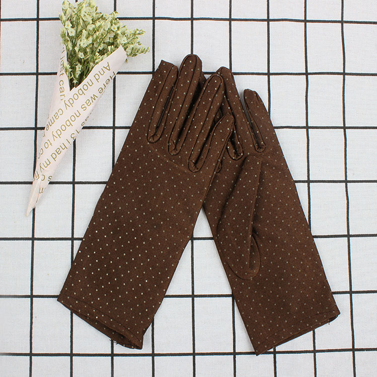 此款为点点氨纶手套,面料柔顺纤细,从选料,裁剪,缝纫,检查,包装,我们都下足了功夫。