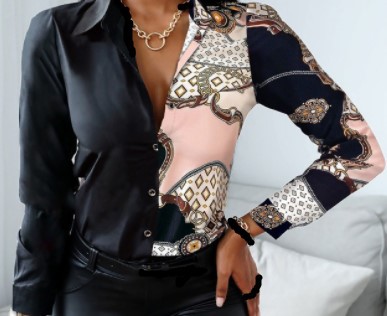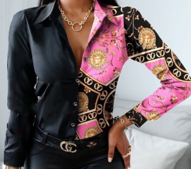 2022 독립 역은 아마존 인기 가을과 겨울 긴 소매 V-넥 컬러 매칭 복고풍 스타일 셔츠 탑스토어 가기