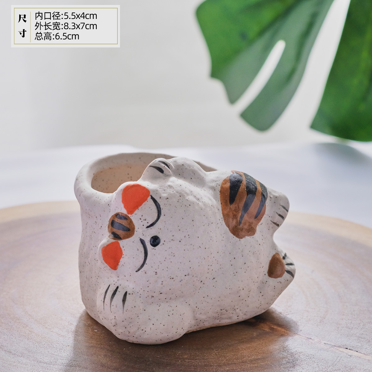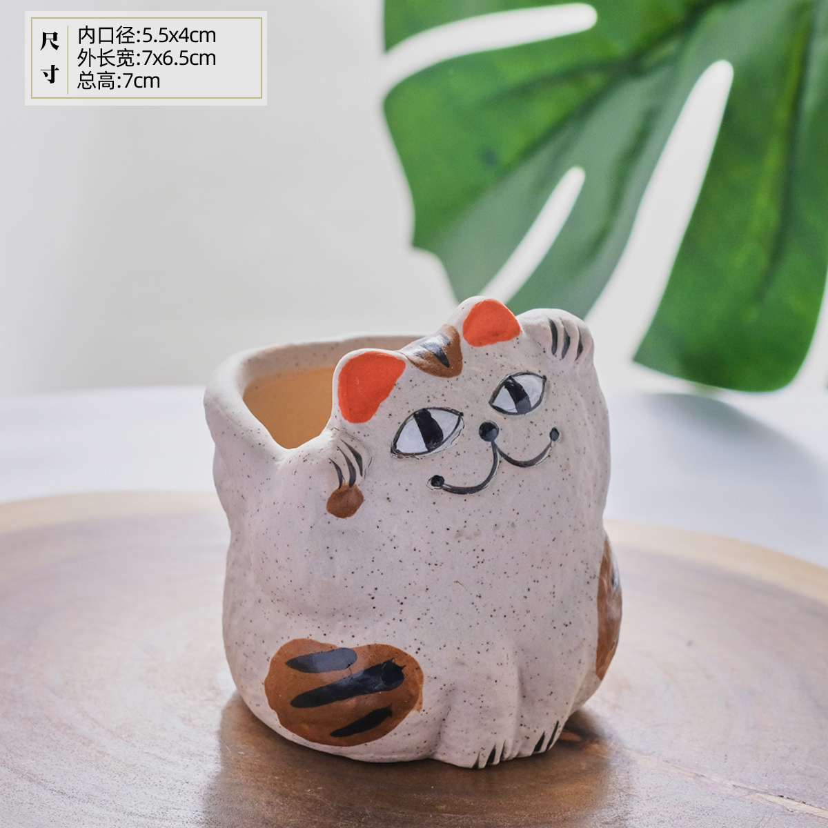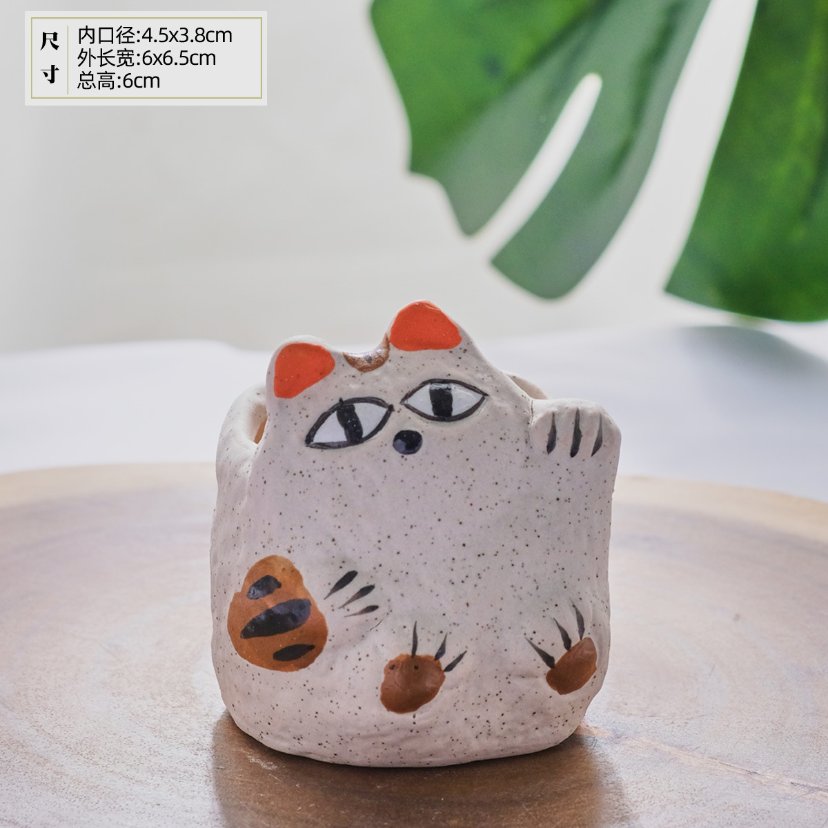 만화 오래된 행운의 고양이 작은 엄지 손으로 제어되는 다육 화분 세라믹 새끼 고양이 구멍이 있는 다육 식물 화분