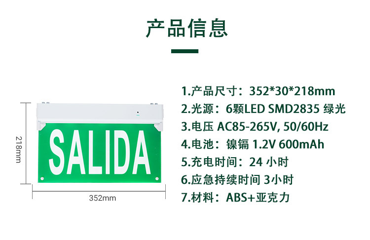 페루에서 인기 있는 SALIDA 수출 표지판 LED 화재 비상 지시등 안전 표지판 LED 에너지 절약스토어 가기