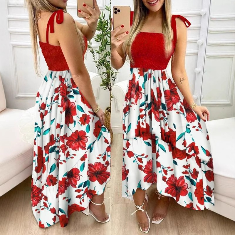 2022 독립 역 아마존 새로운 스트랩 스티칭 인쇄 불규칙한 튜브 상단 원피스 대량 재고