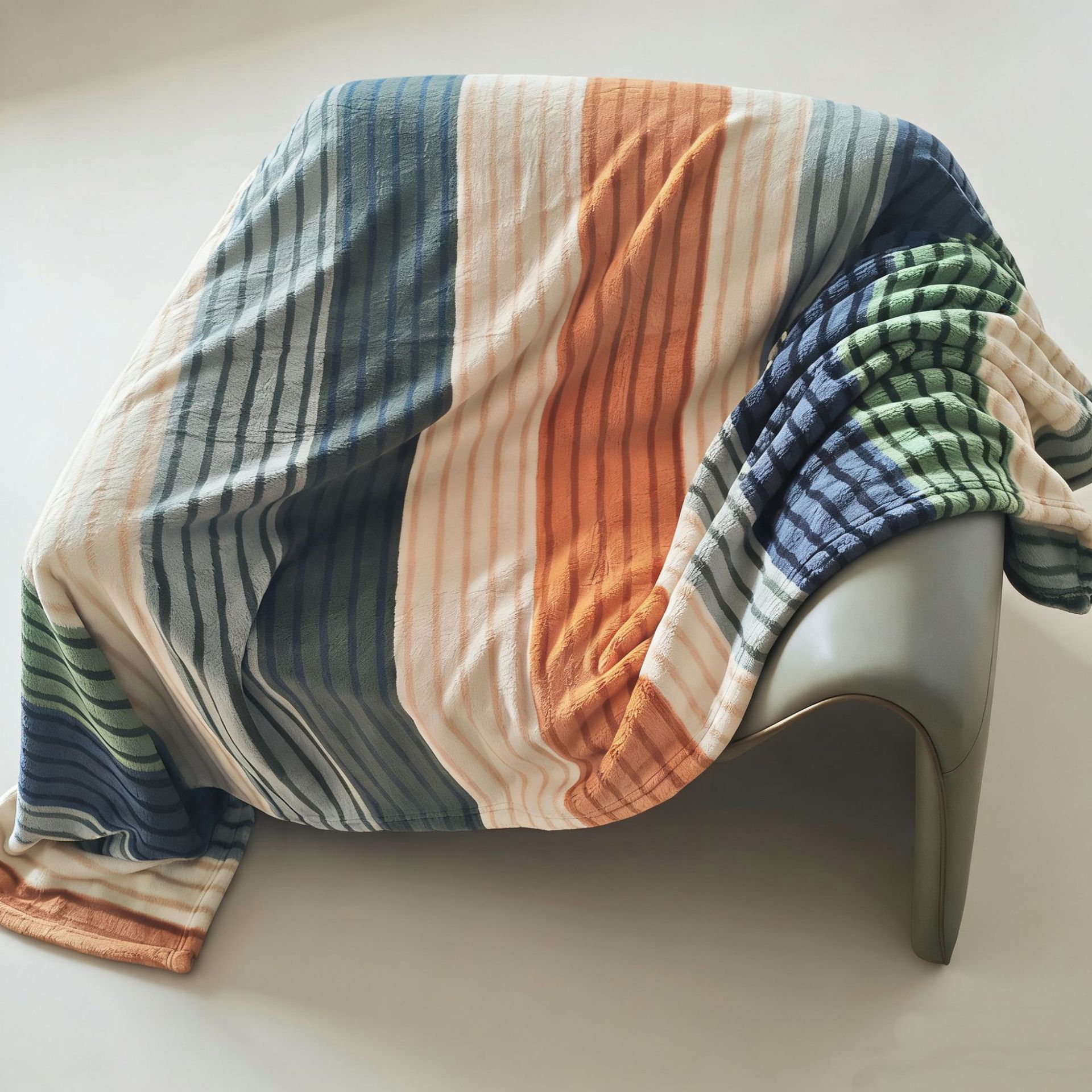 1:竖条是压花压出来的,不是织布织出来的提花面料,这样可以保住毛毯的反面风格依旧是平纹,这样做的好处是显厚,盖起来更舒服;
