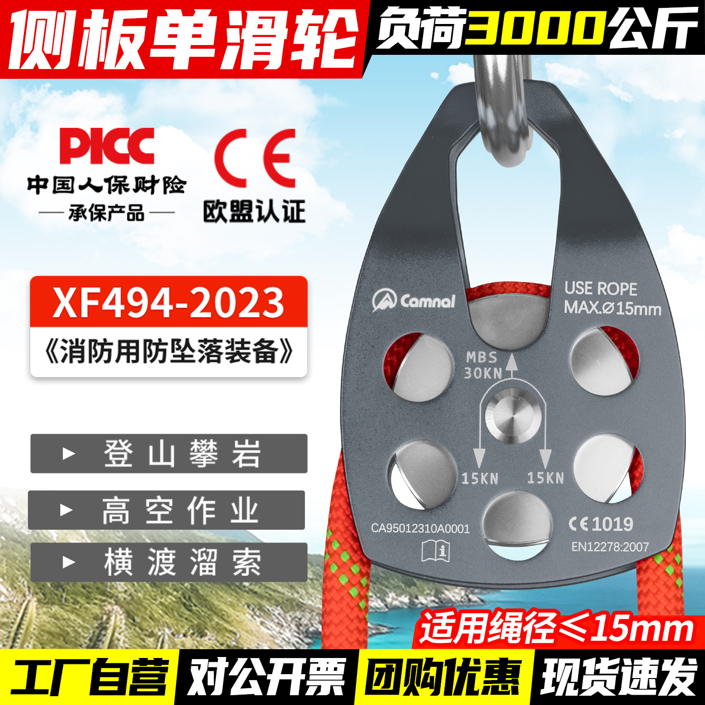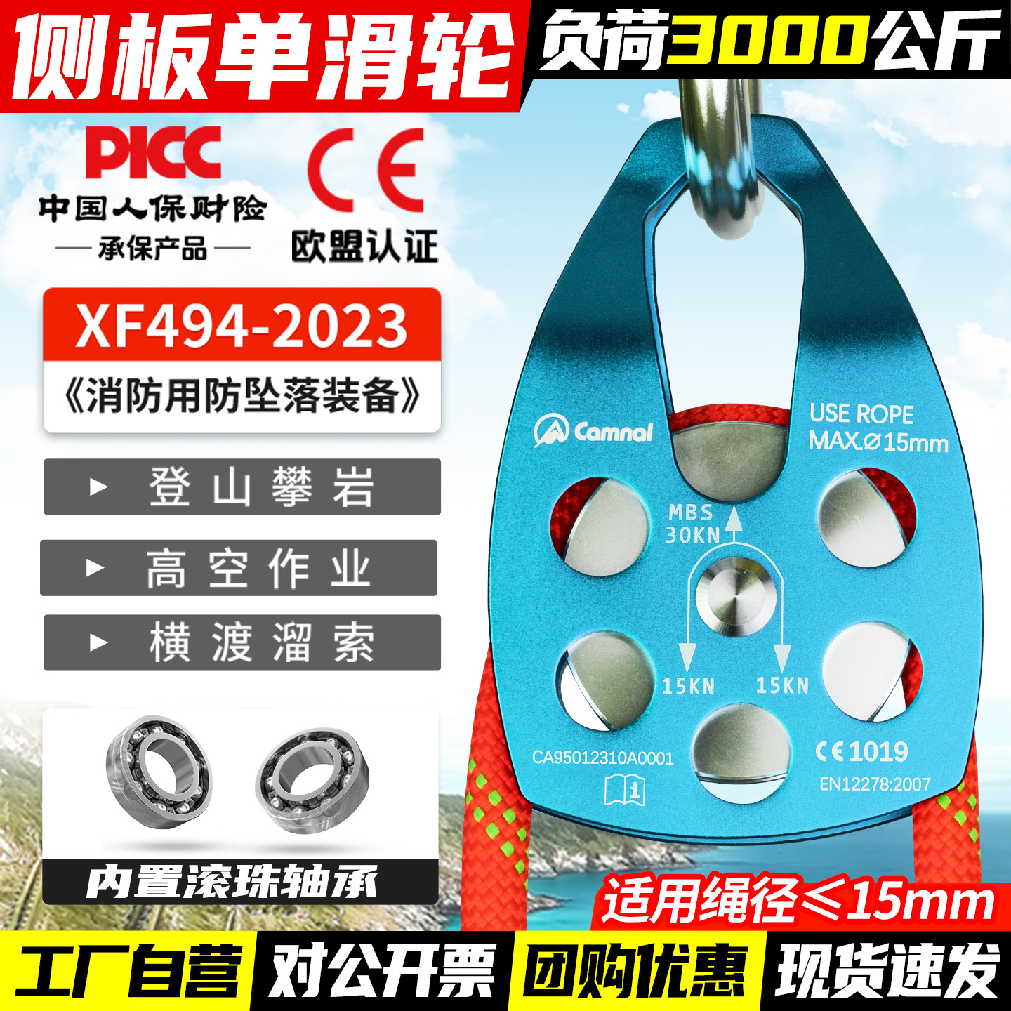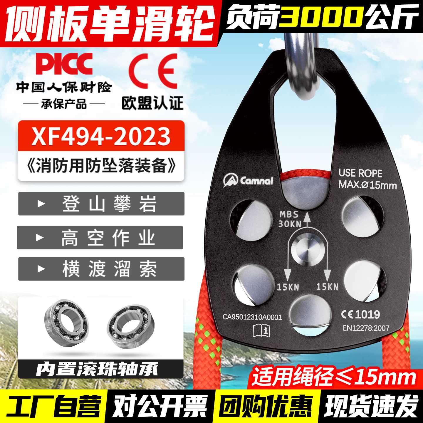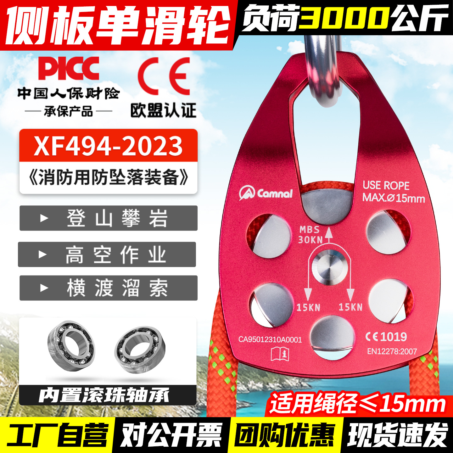 칸레 야외 등산 구조 대형 도르래 호이스트 풀리 암벽 등반 속도 저하 확장 운송 고고도 풀리 벨트 베어링스토어 가기