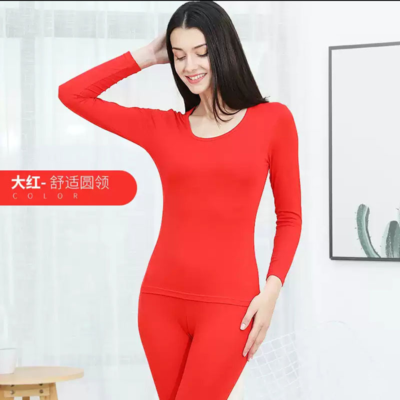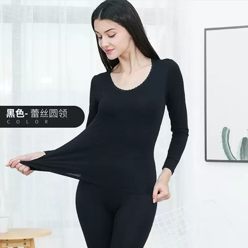 Longsha 여자의 대나무 섬유 얇은 가을 옷과 바지 세트 모달 면 편안한베이스 셔츠 라운드 넥 단색 속옷스토어 가기