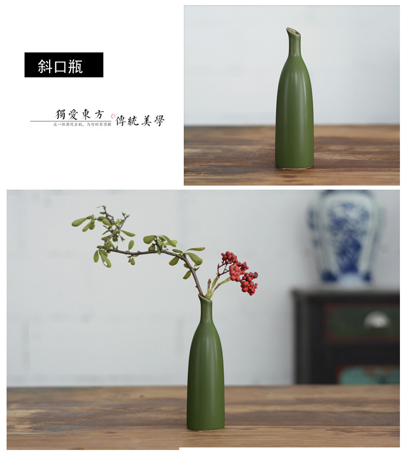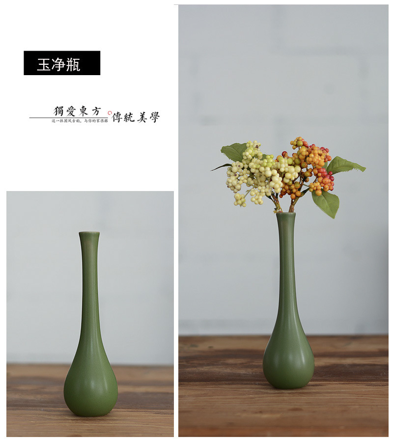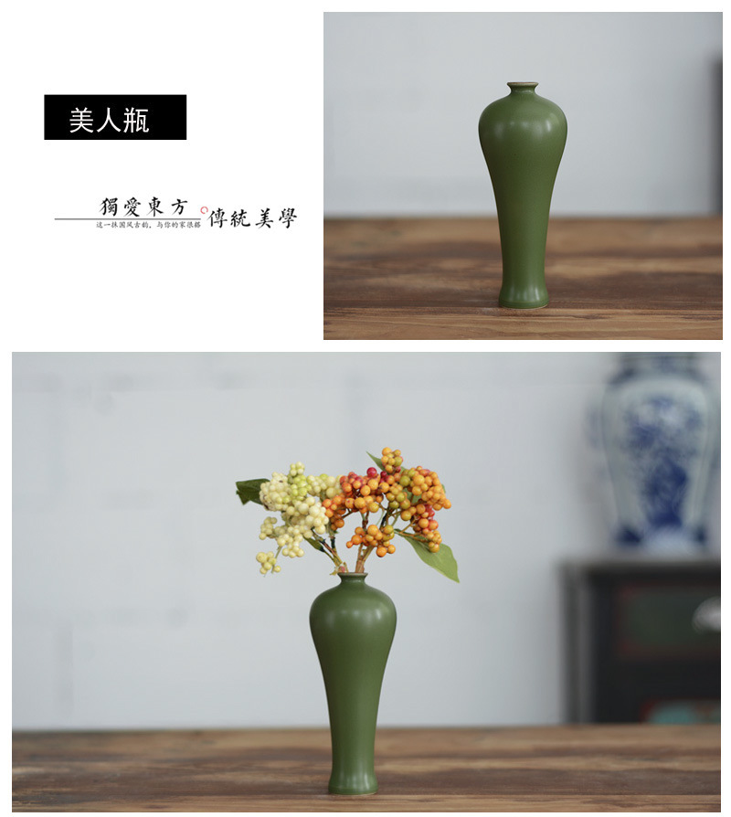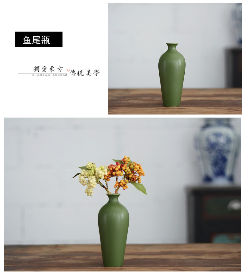 도매 Jingdezhen 복고풍 꽃병 녹색 말린 꽃 홈 장식 새로운 중국 선 세라믹 장식품스토어 가기