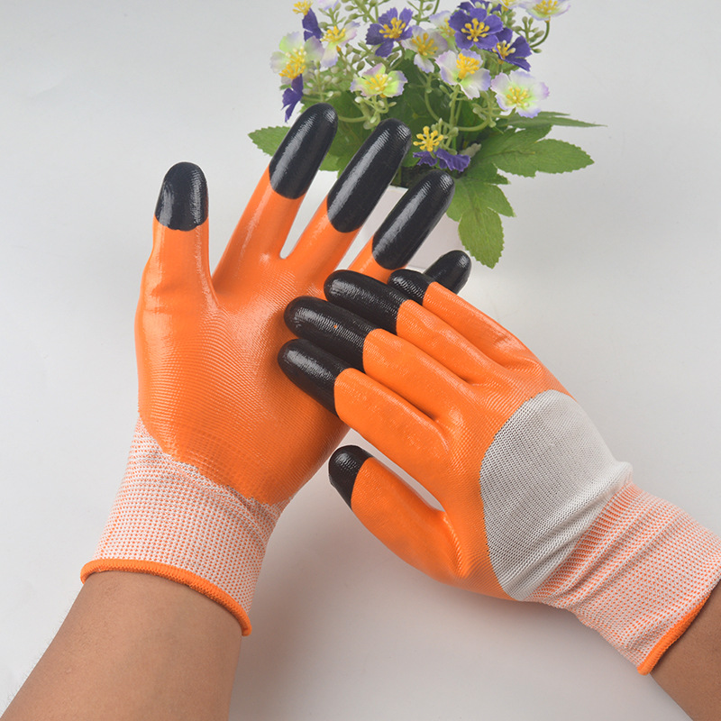 올고무 나일론 Ding Qing 세미 행잉 접착제 디핑 오일 방지 장갑 오렌지 퍼플 산업 건물 방수 장갑 노동 보호 용품 도매스토어 가기
