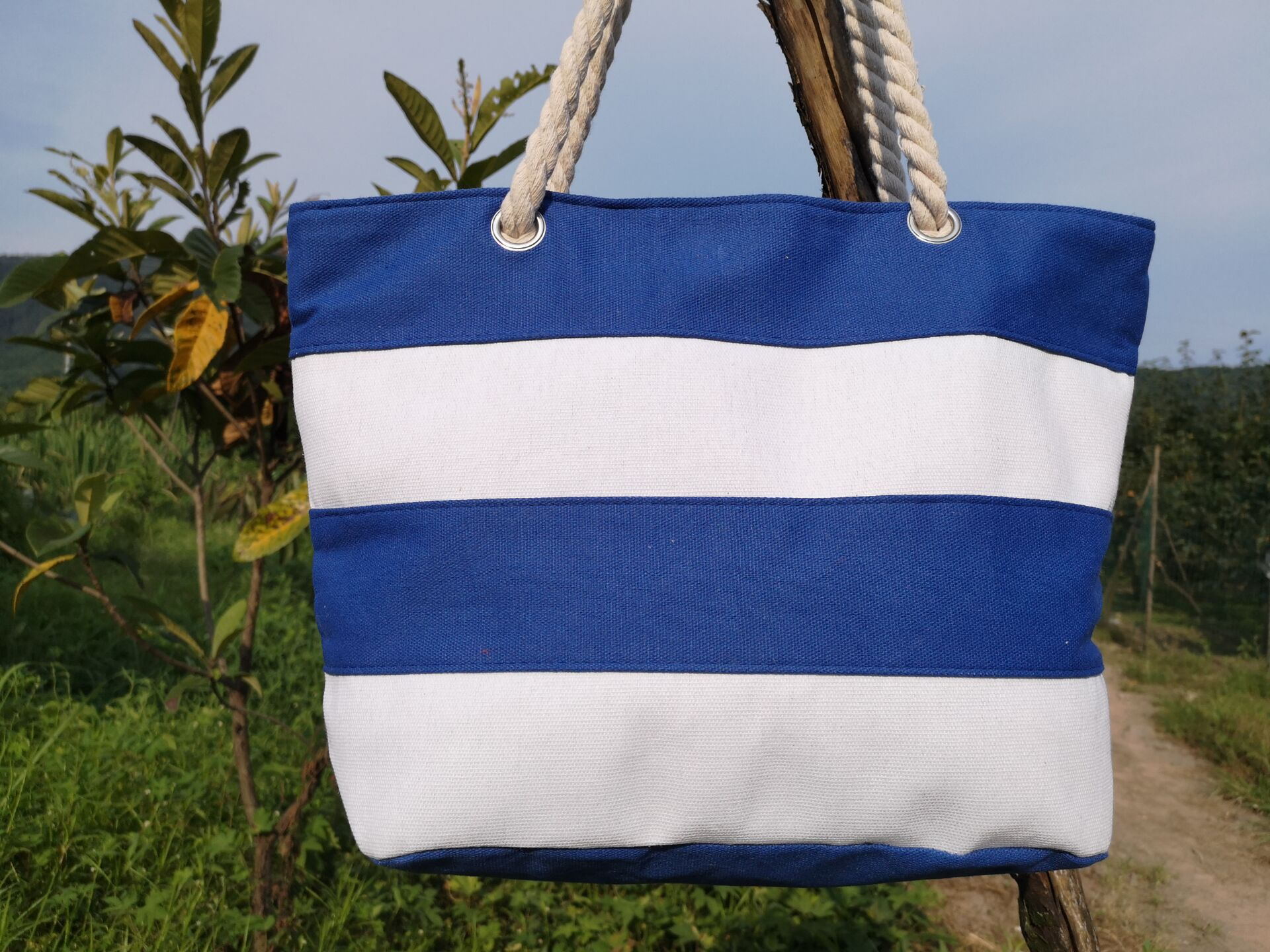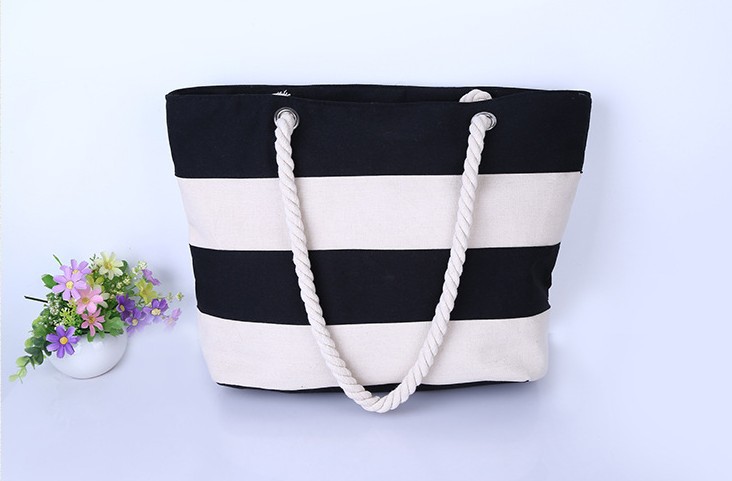 新款超百搭粗麻绳时尚帆布包单肩包 沙滩包 条纹包环保包袋