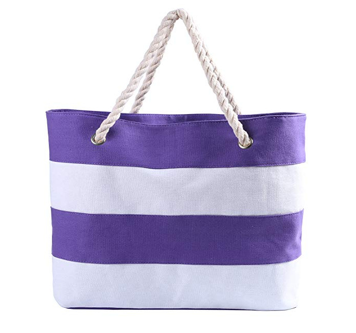새로운 스타일의 초심플하고 다재다능한 두꺼운 끈 패션 캔버스 백, 숄더백, 스플라이스 비치 스트라이프 친환경 가방스토어 가기