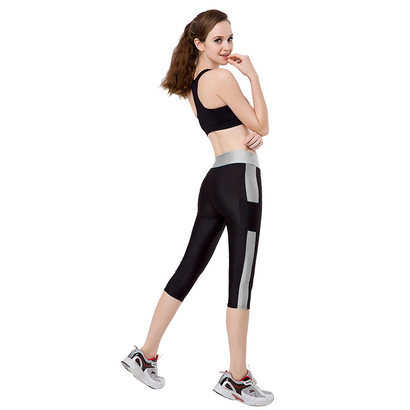 크로스보더 스포츠 요가 팬츠 7부 사이드 포켓 탄력 여성 레깅스 피트니스 러닝 스포츠 팬츠 속건 여성용