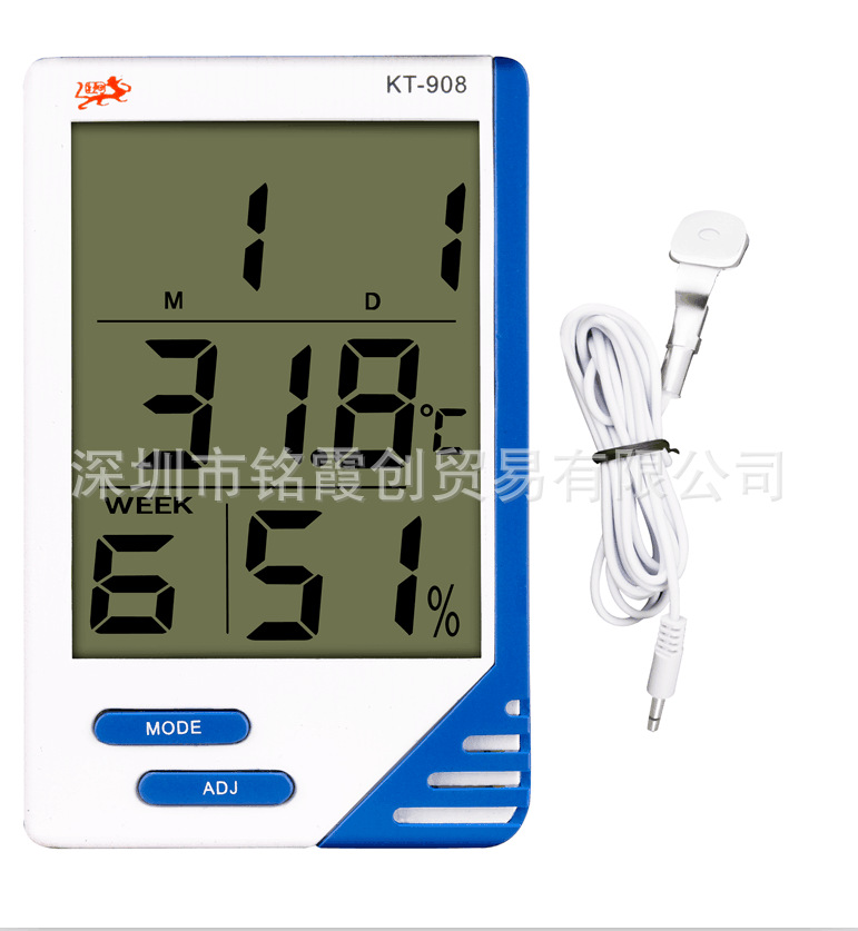 KT908 다기능 전자 온도 습도 측정기 실내 및 실외 이중 온도계 온도 및 습도 스트랩 시간
