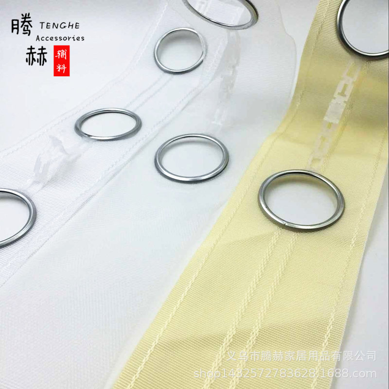 厂家直批窗帘带、窗帘打孔布带、窗帘扣环、窗帘打孔式的加工辅料。