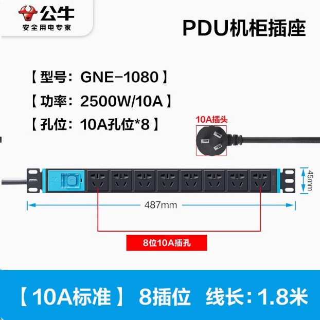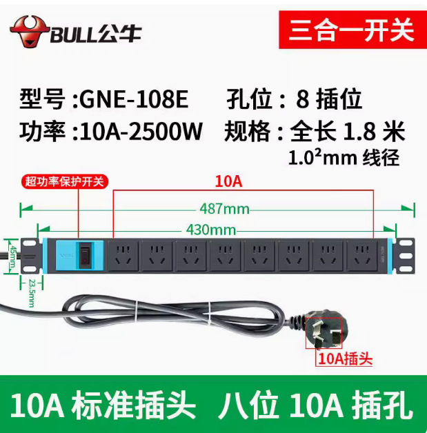 Bull 캐비닛 소켓 E1080 고전류 통신 전원 스트립 19inch 플러그인 보드 산업용 등급 PDU 소켓스토어 가기