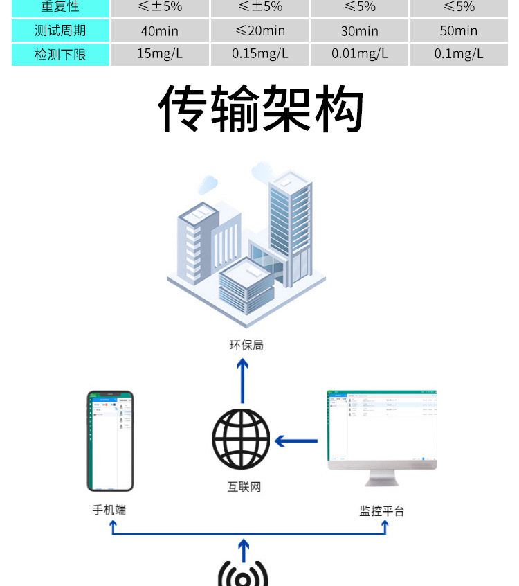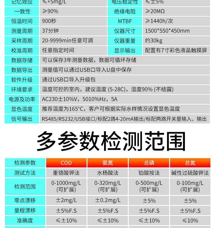 산업 온라인 COD 분석기 암모니아 질소 총 인 총 질소 자동 모니터 수질 중금속 탐지기