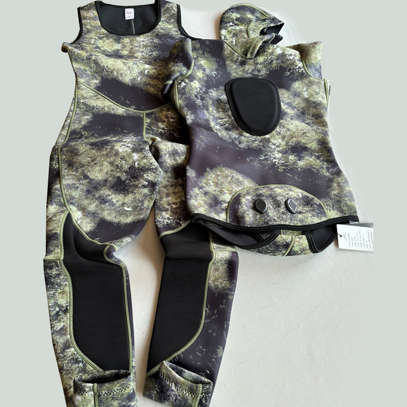 네오프렌 다이빙 세트 3mm 위장 분할 투피스 다이빙 세트 후드 방한 따뜻한 다이빙 세트