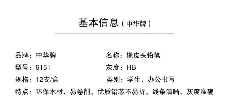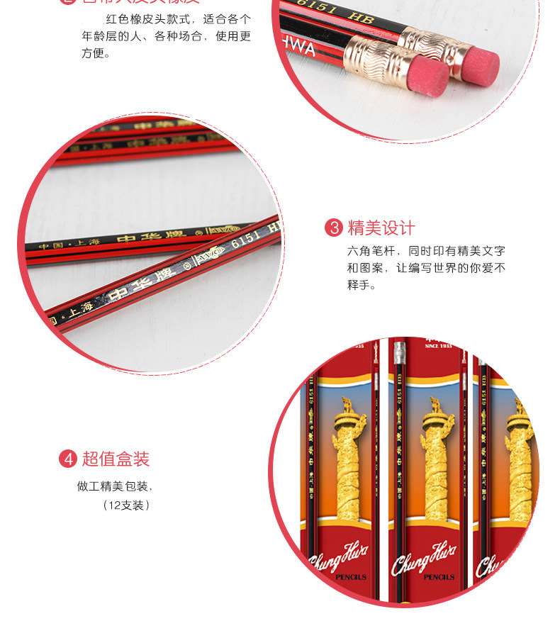 정품 6151 지우개와 중국 연필 12 박스 어린이 그림과 쓰기 나무 연필 문구 도매스토어 가기