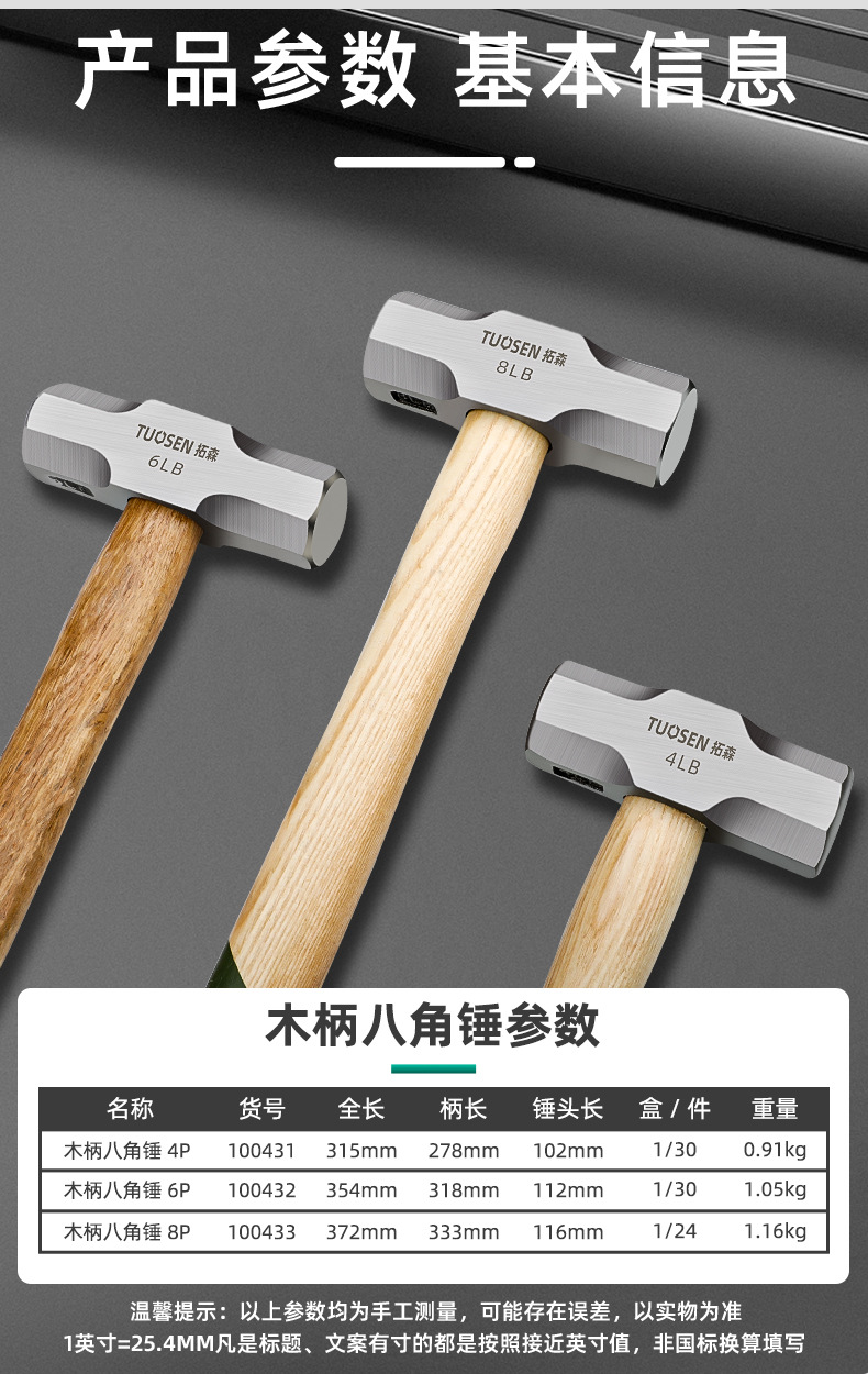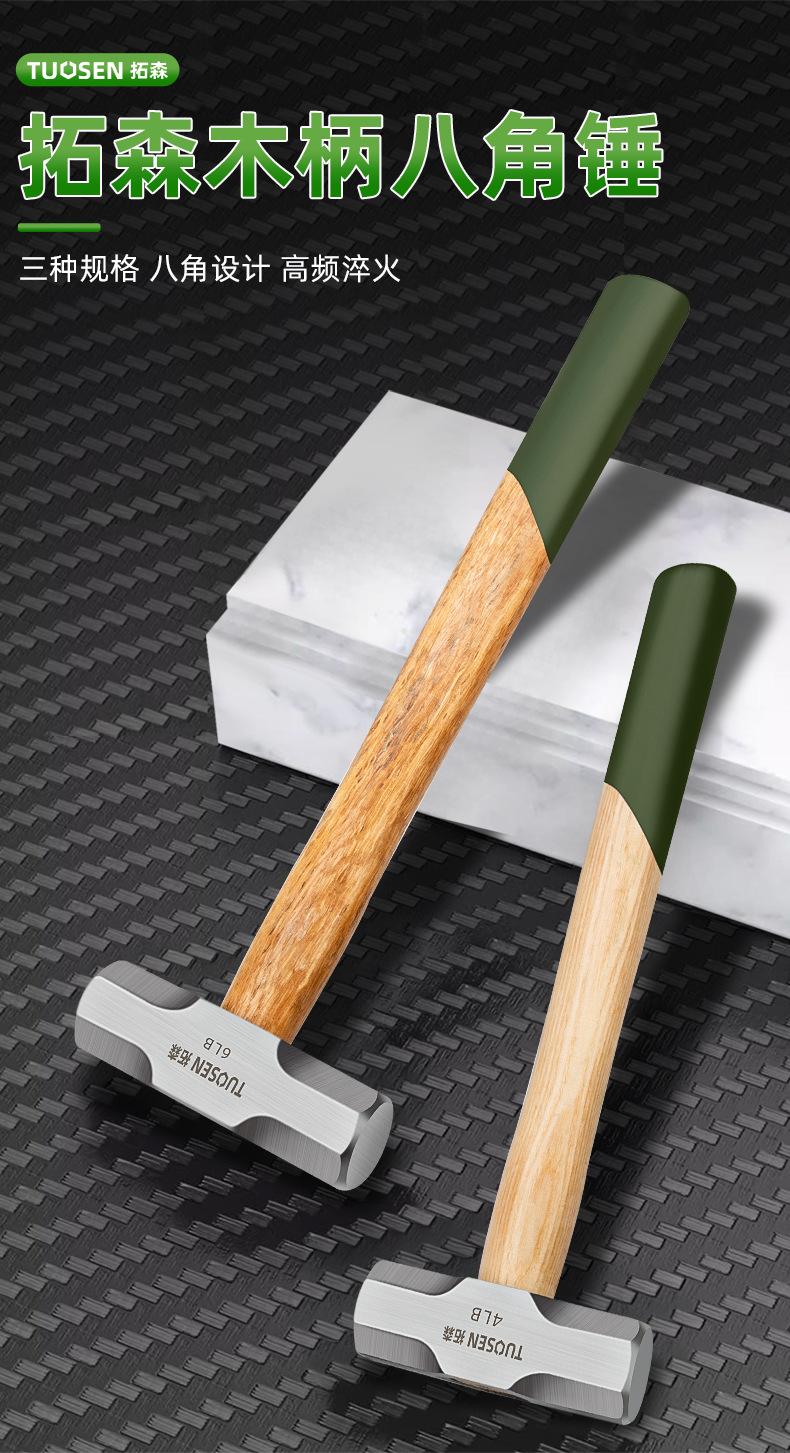 Tuosen 도구 4p 나무 손잡이 망치 6P 벽 스매싱 벽돌 석조 망치 8P 가정 장식 도구 팔각형 망치 도매스토어 가기