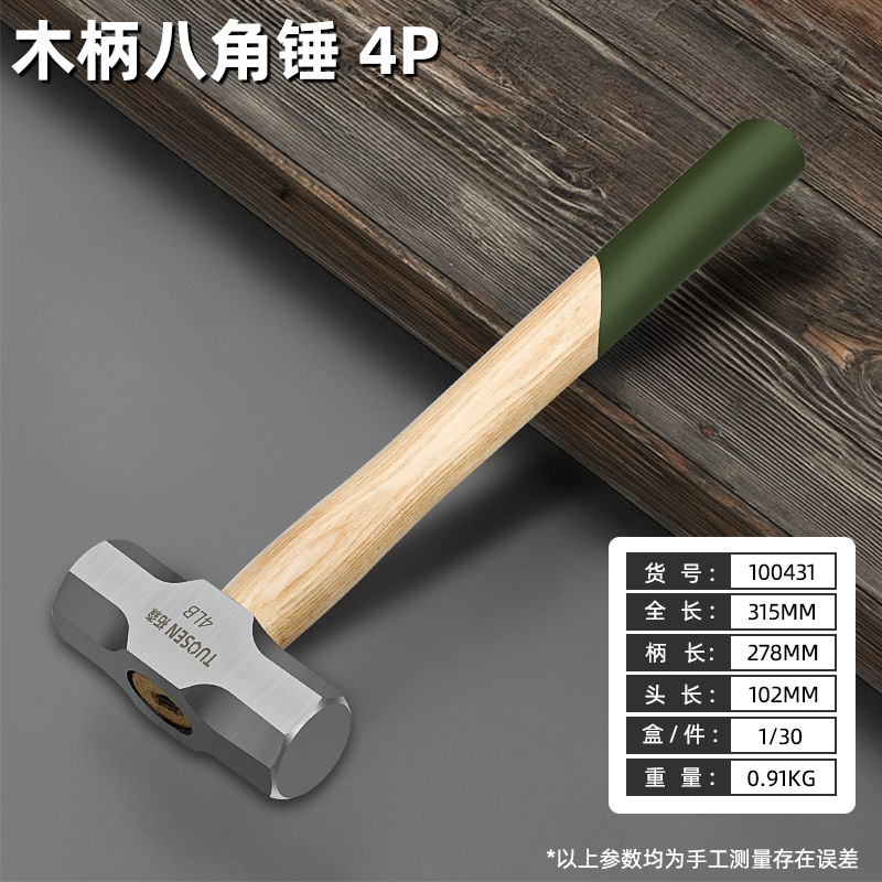 • 100431, 나무 손잡이 팔각형 망치 4p a 30,0.92kg