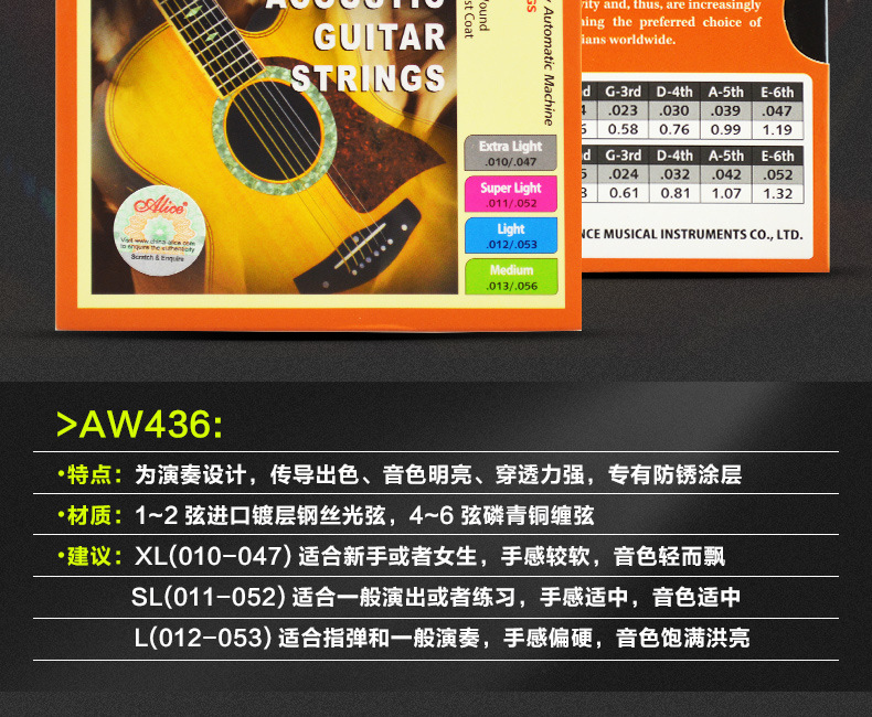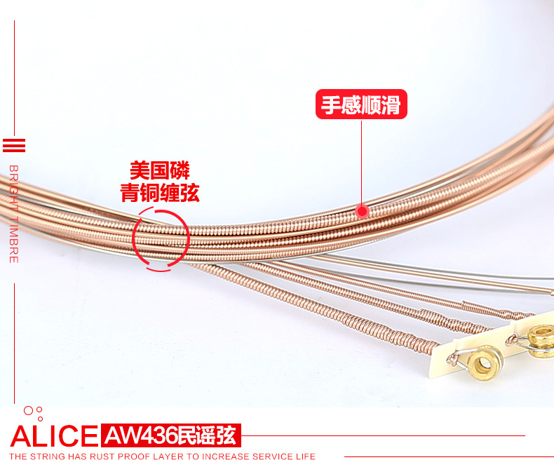 앨리스 앨리스 스트링 AW436 인광 브론즈 어쿠스틱 기타 1 현 6 개 세트 액세서리 Xuan 라인 컴플리트 세트