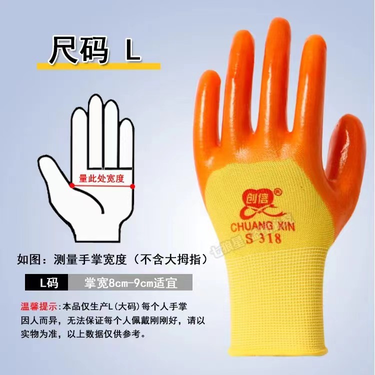 교수형 접착제 장갑 산 및 알칼리 보호 장갑 Chuangxin S318PVC 장갑 담근 접착제 노동 보호 장갑 현장 작업 도매스토어 가기
