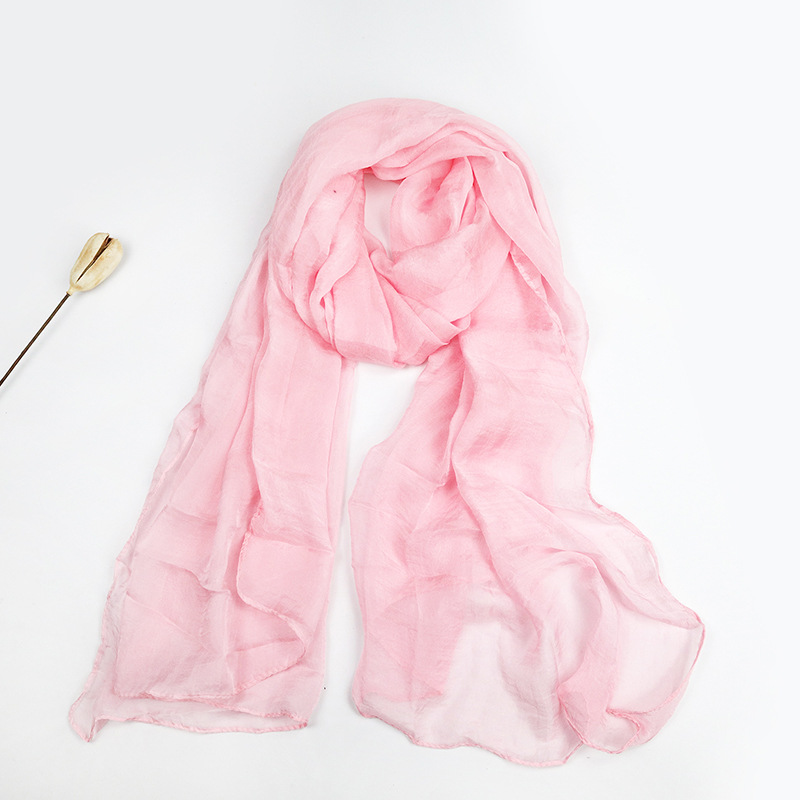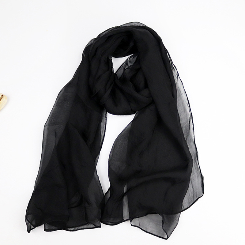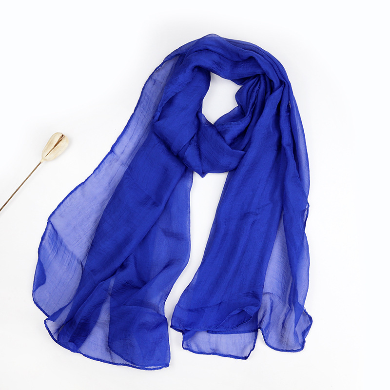 가을과 겨울 스카프 새로운 한국 스타일 대형 단색 실크 스카프 모조 실크 비치 스카프 여성 스카프 주름 쉬폰 스카프스토어 가기