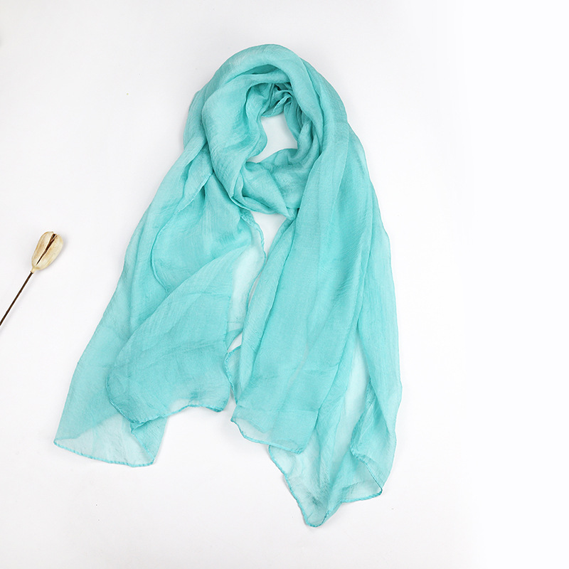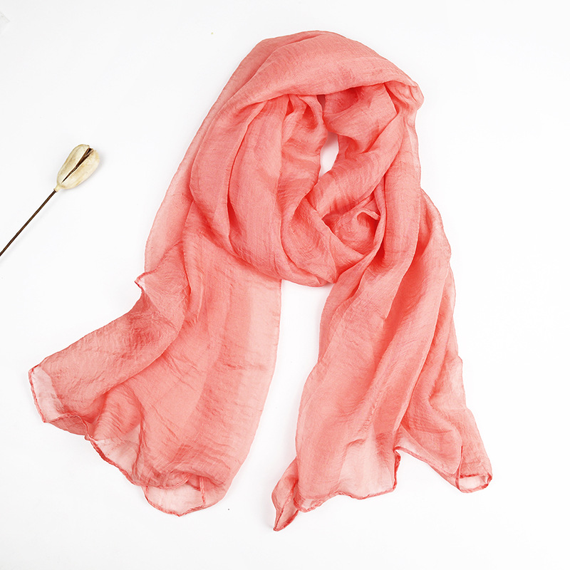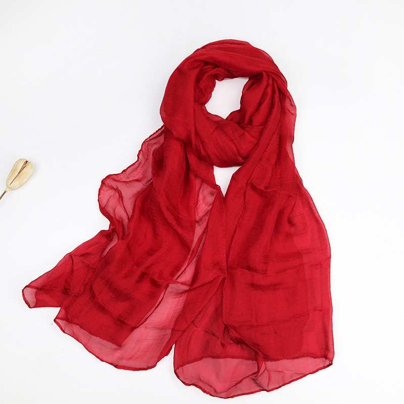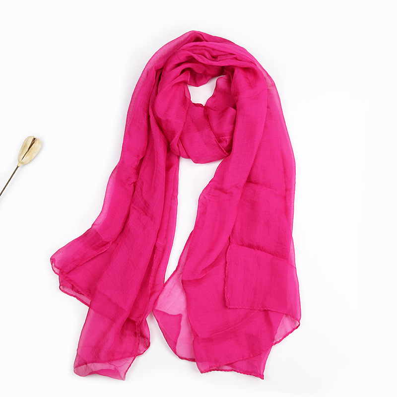 가을과 겨울 스카프 새로운 한국 스타일 대형 단색 실크 스카프 모조 실크 비치 스카프 여성 스카프 주름 쉬폰 스카프
