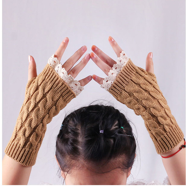 크로스 보더 울 장갑 아름다운 레이스 레이스 슬리브 팔찌 겨울 여성 따뜻한 일본과 한국 니트 반 손가락 장갑