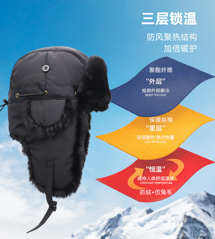 야외 두꺼운 Lei Feng Hat 가을과 겨울 조절 가능한 헤드 웨어 남성 및 여성용 스키 모자 따뜻한 귀 보호 모자 국경 간 폭발스토어 가기