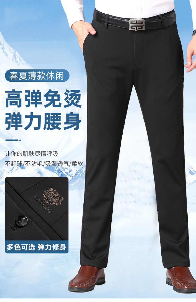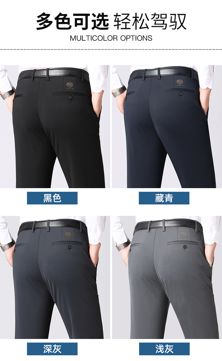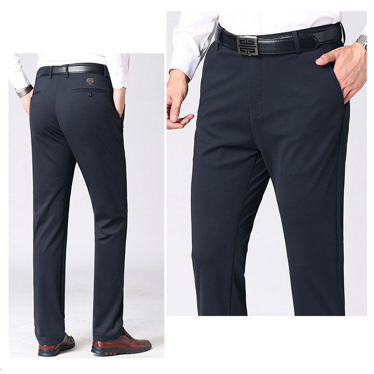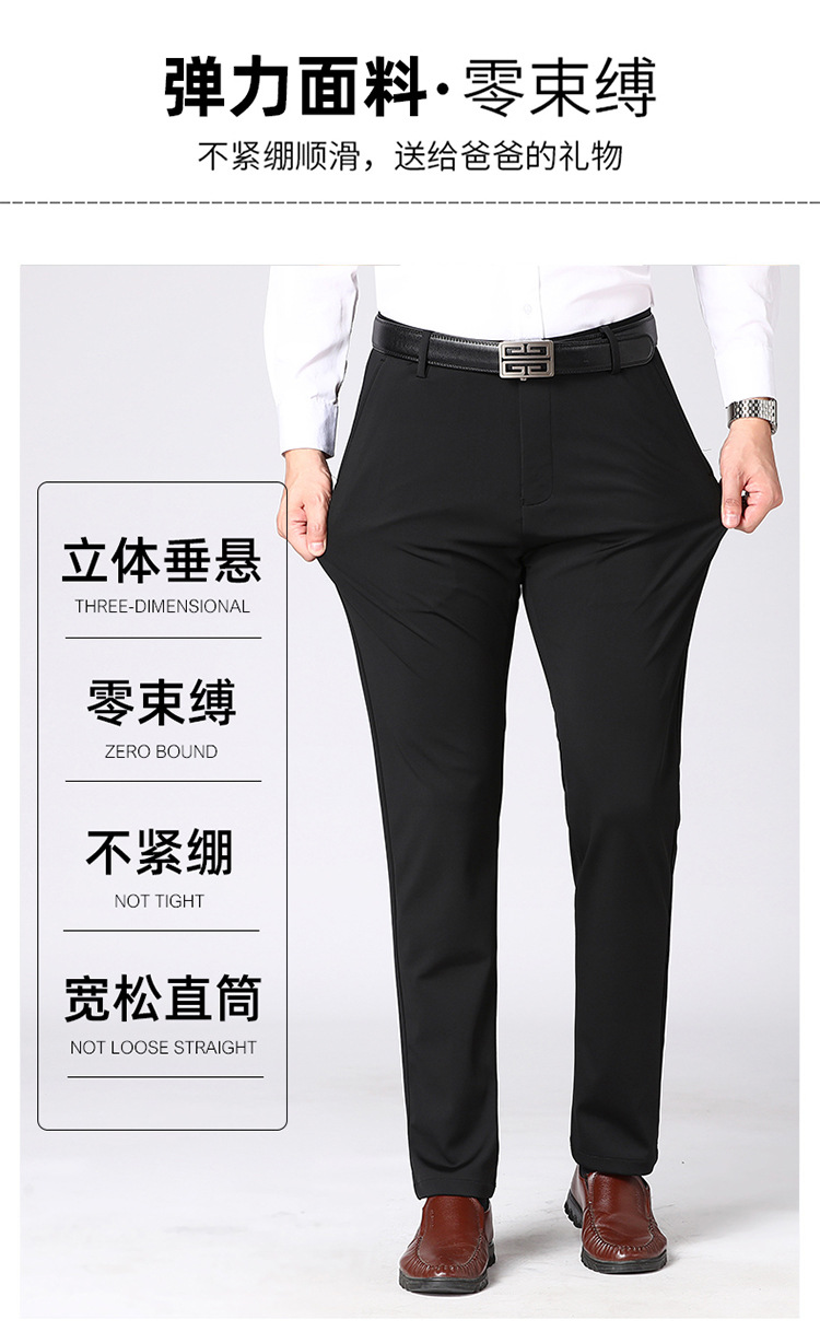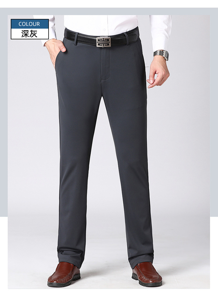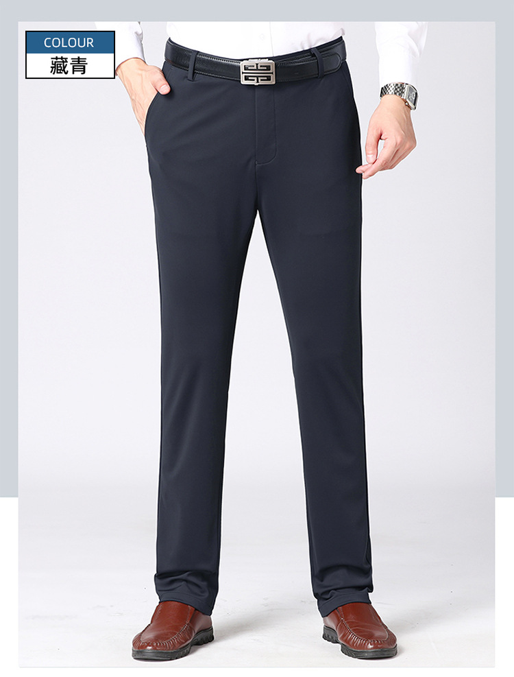 봄과 여름 남성용 아이스 실크 스트레치 비즈니스 캐주얼 바지 하이 웨이스트 스트레이트 남성용 바지 아빠 남성용 세트 바지 작업 긴 바지스토어 가기