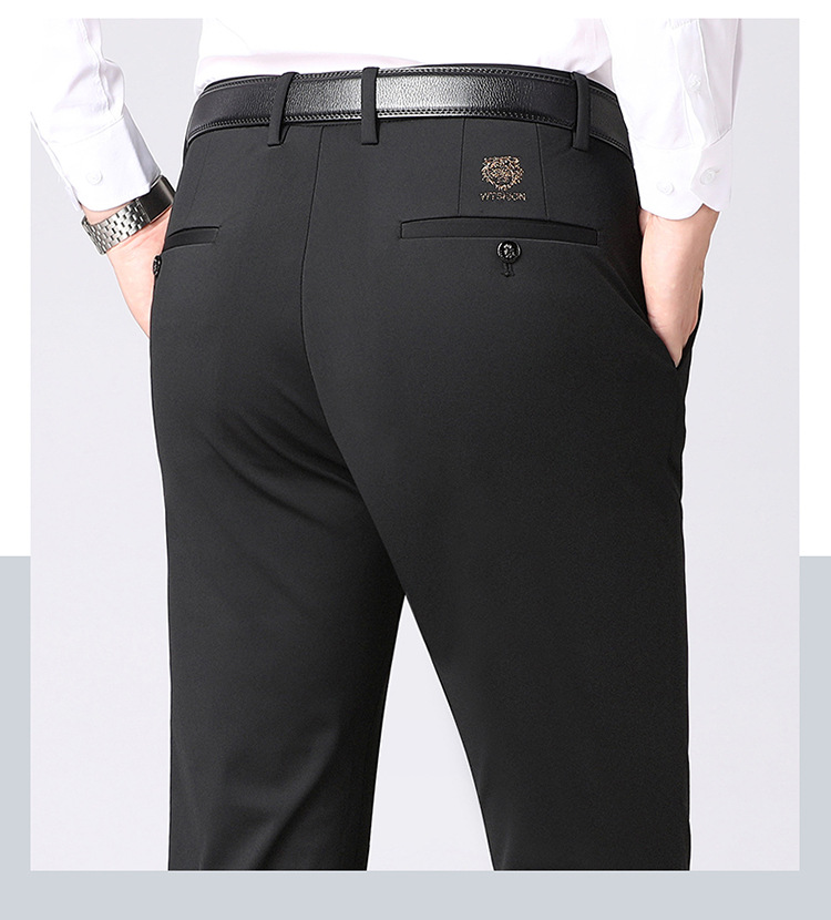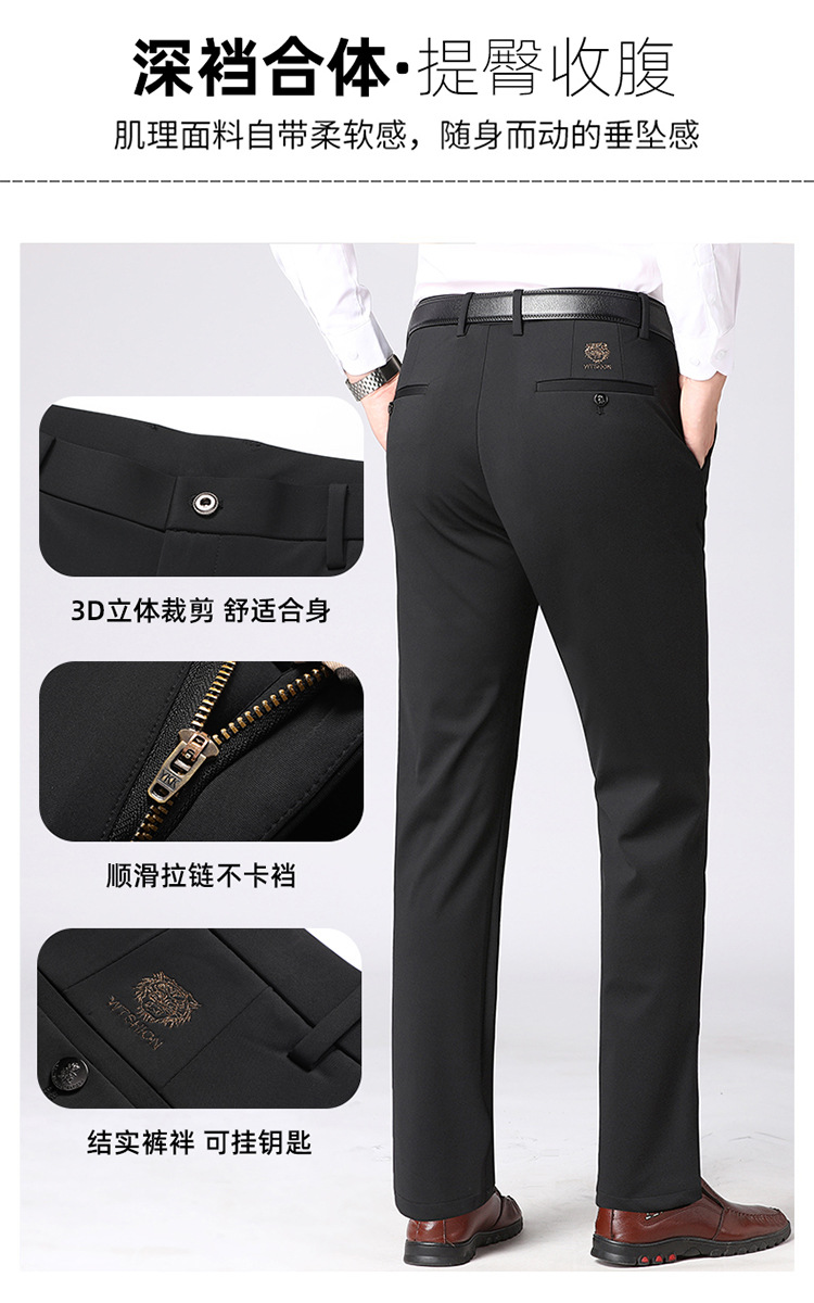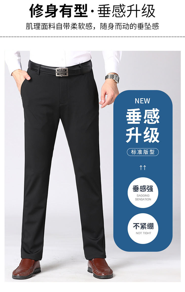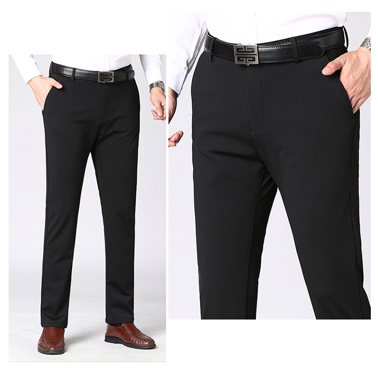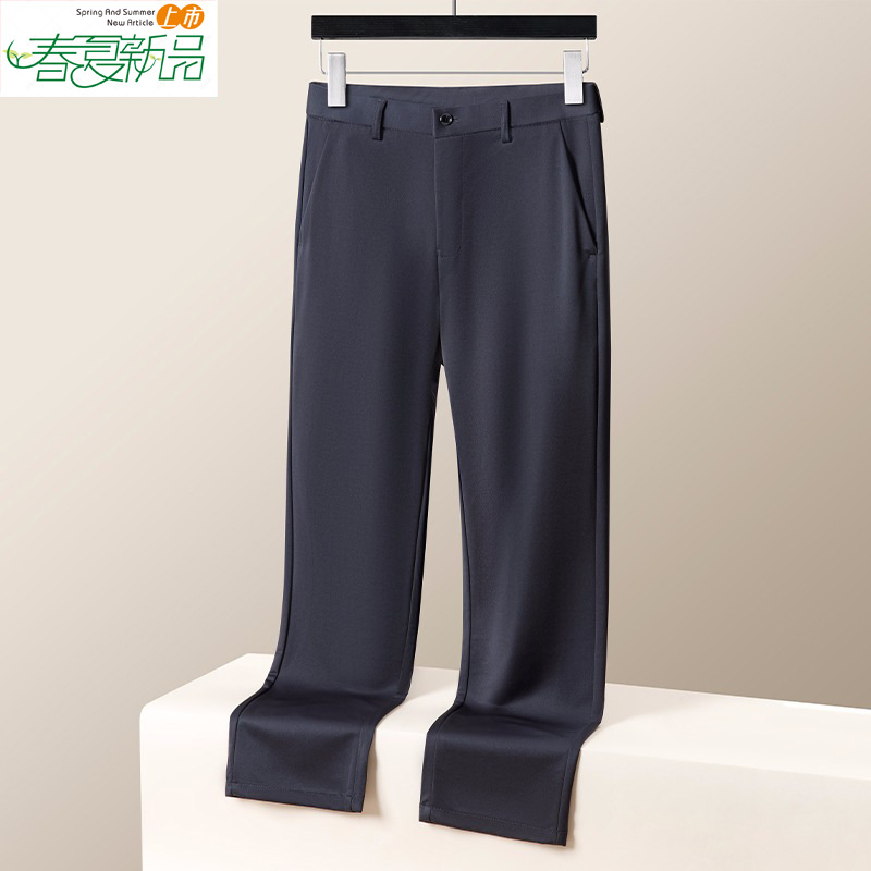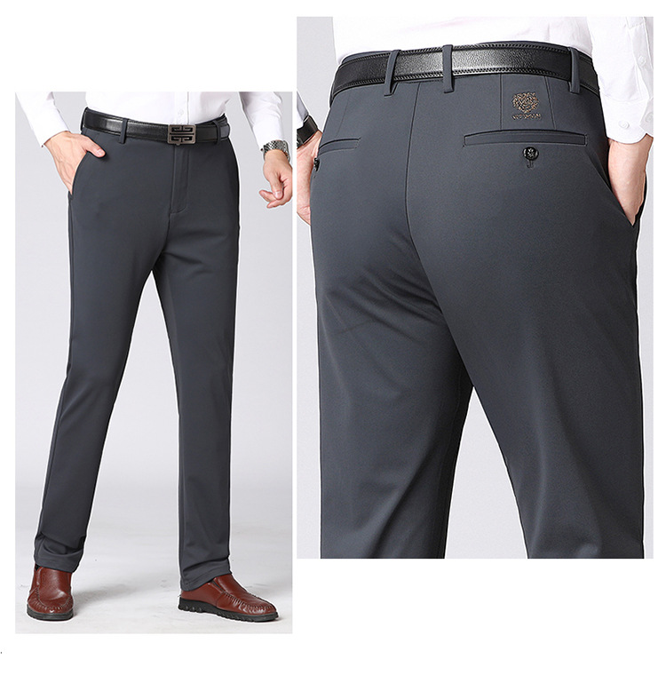 봄과 여름 남성용 아이스 실크 스트레치 비즈니스 캐주얼 바지 하이 웨이스트 스트레이트 남성용 바지 아빠 남성용 세트 바지 작업 긴 바지스토어 가기