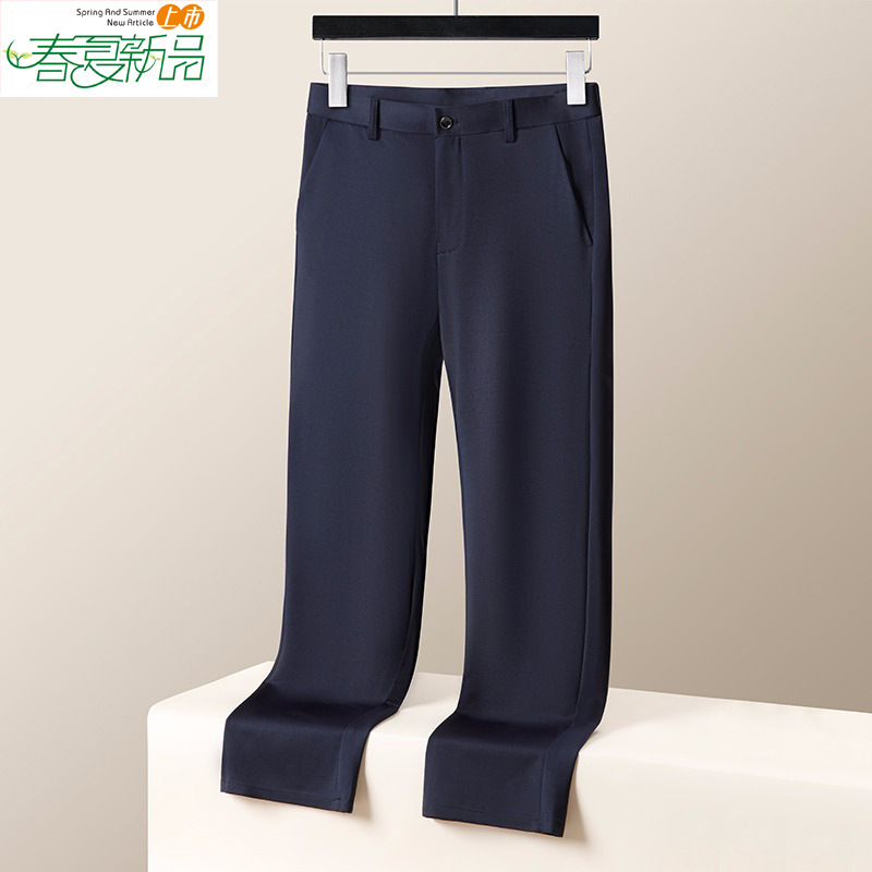봄과 여름 남성용 아이스 실크 스트레치 비즈니스 캐주얼 바지 하이 웨이스트 스트레이트 남성용 바지 아빠 남성용 세트 바지 작업 긴 바지