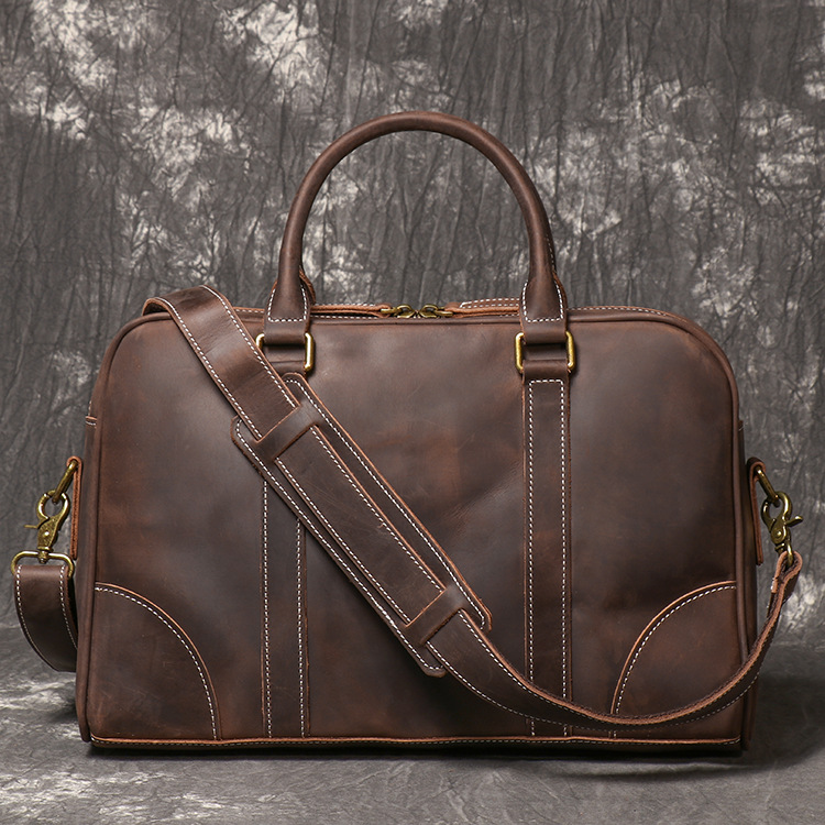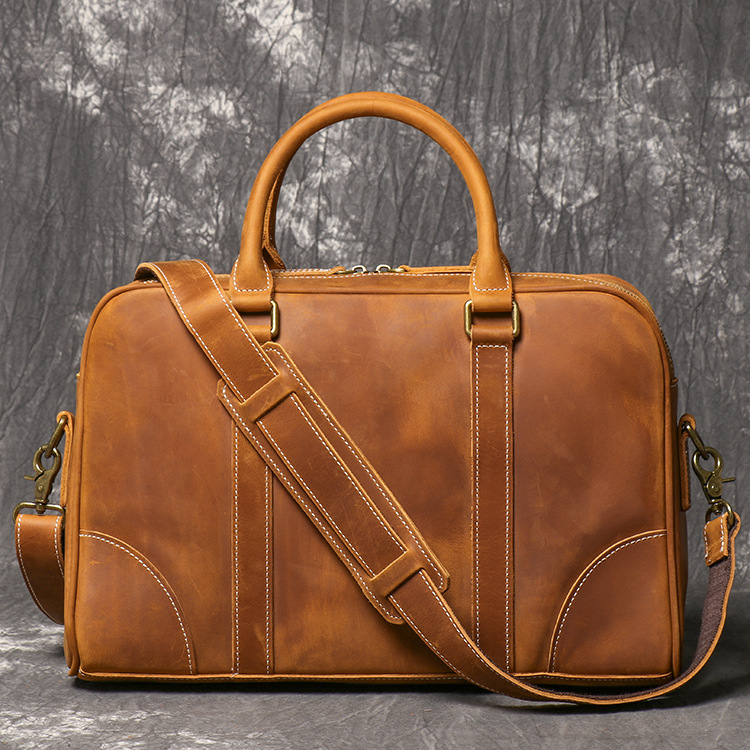 크로스 보더 팩토리 새로운 정품 가죽 남성용 휴대용 서류 가방 미친 말 가죽 원 숄더 크로스 바디 백 대용량 소가죽 컴퓨터 가방스토어 가기