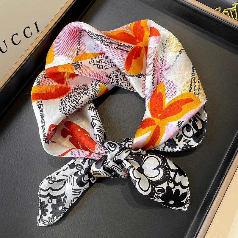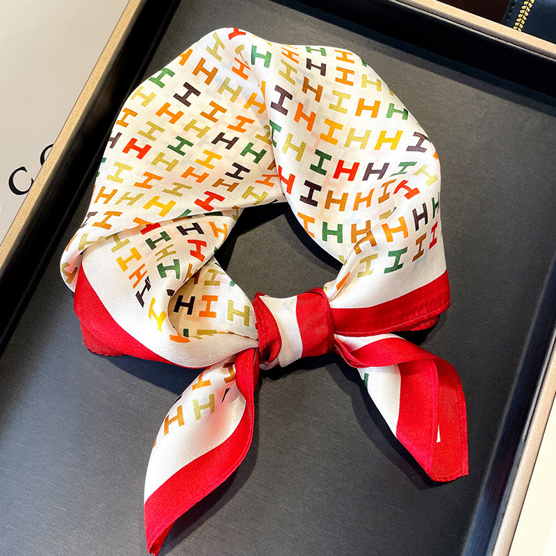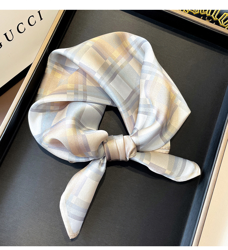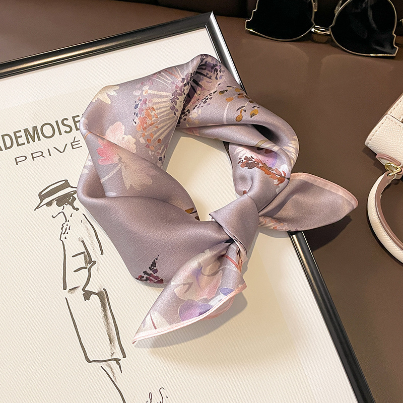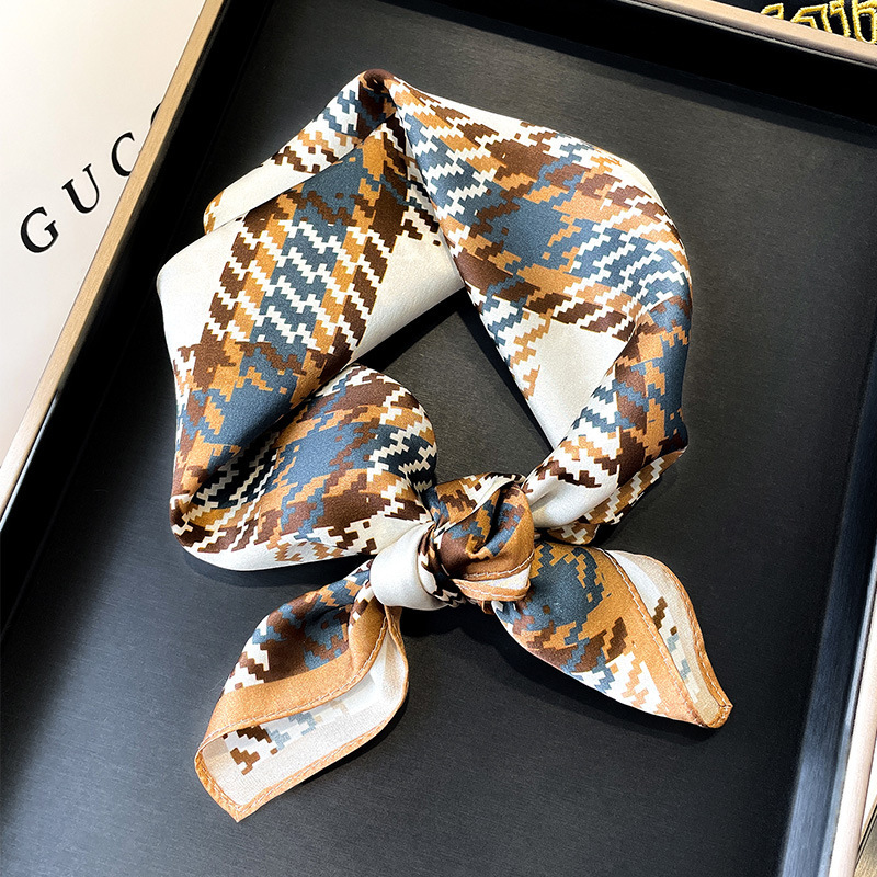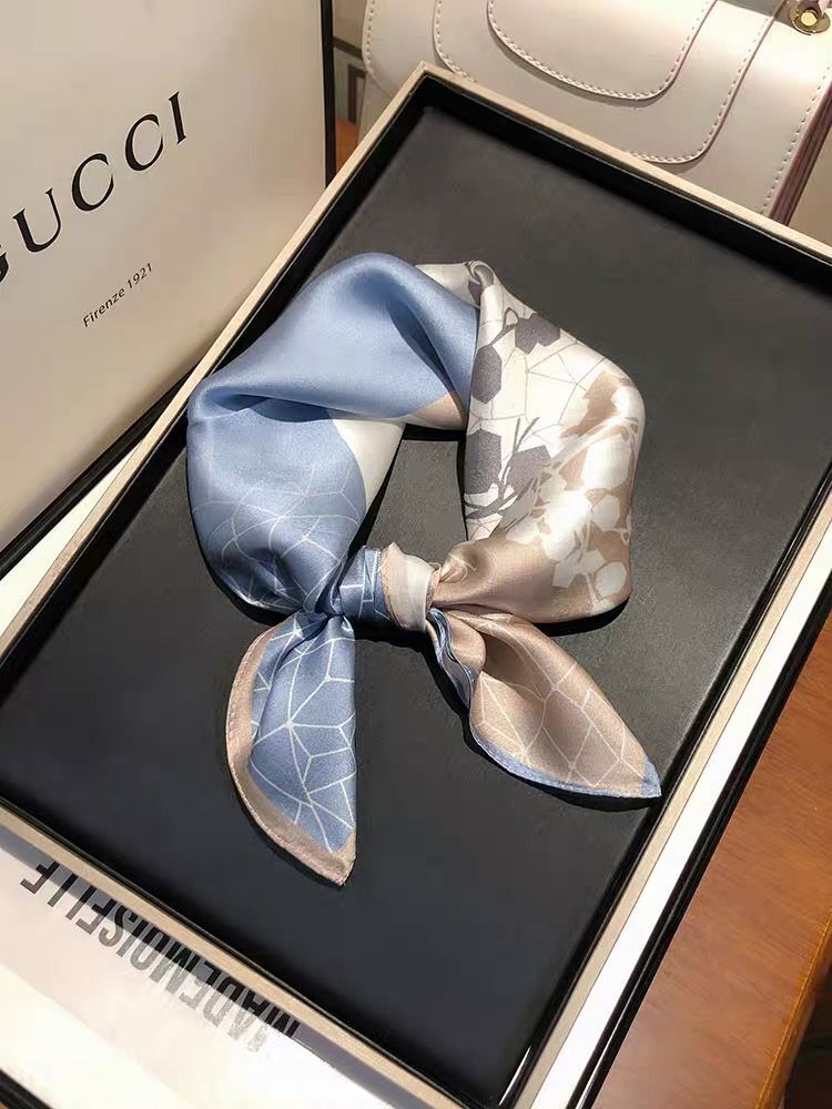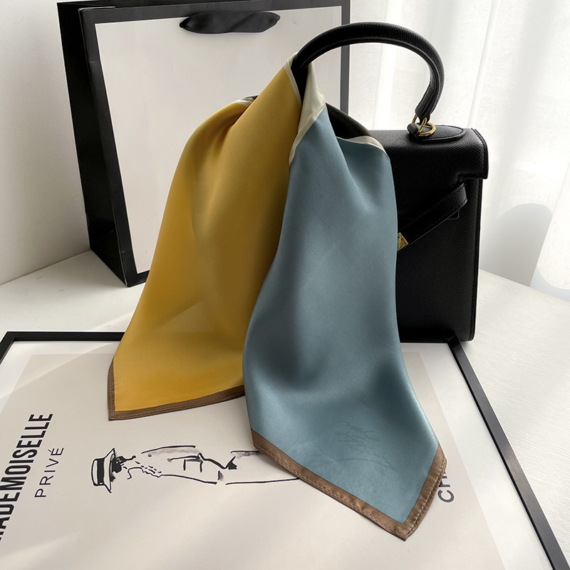 봄 한국 작은 스카프 모든 일치 장식 기하학적 스티칭 실크 스카프 여성용 헤어 밴드 새로운 뽕나무 실크 스카프