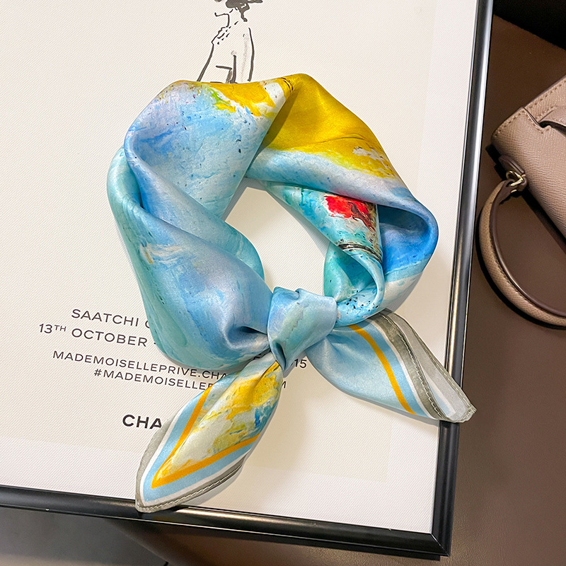 봄 한국 작은 스카프 모든 일치 장식 기하학적 스티칭 실크 스카프 여성용 헤어 밴드 새로운 뽕나무 실크 스카프스토어 가기