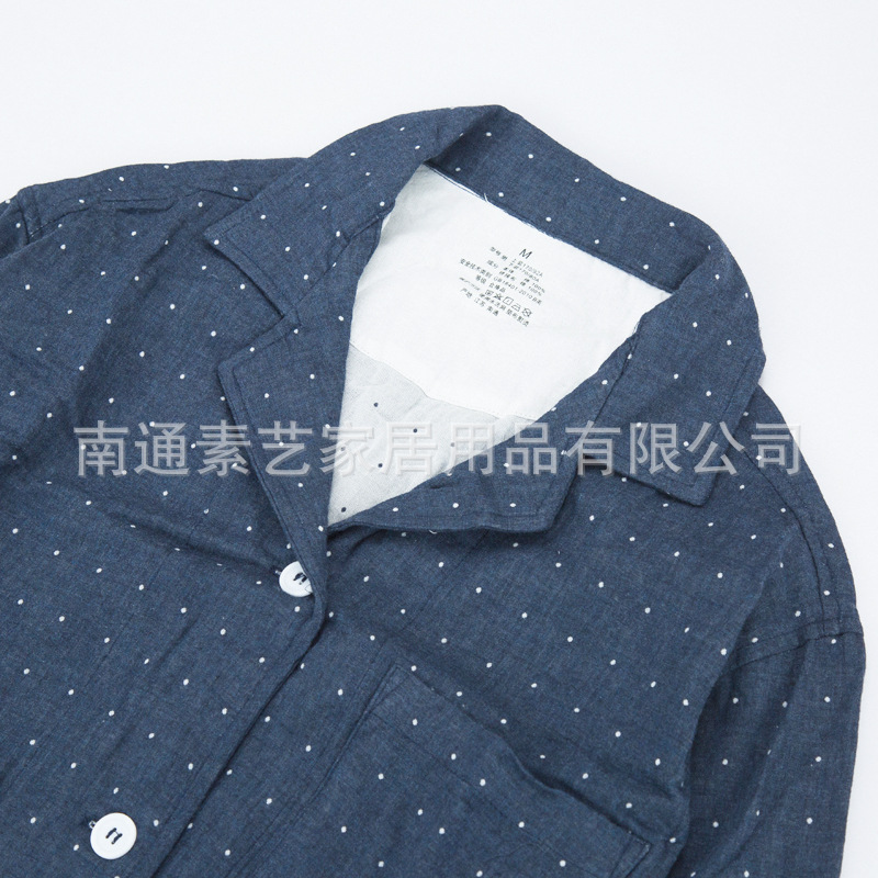 MUJI 가정복 좋은 순면 격자 무늬 가정복 더블 레이어 원사 잠옷 긴팔 올 코튼 가정복 남성과 여성스토어 가기