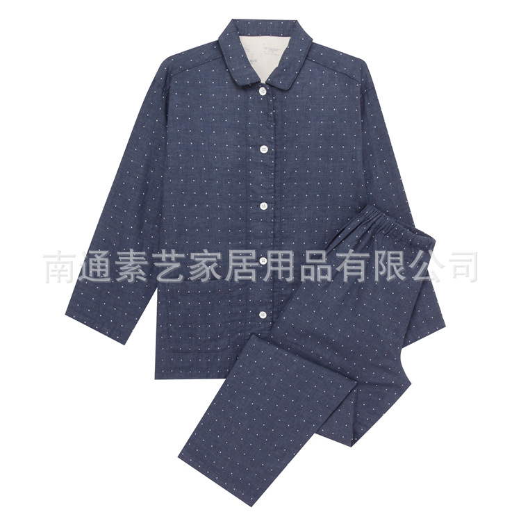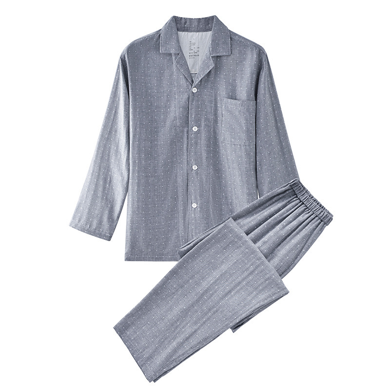 MUJI 가정복 좋은 순면 격자 무늬 가정복 더블 레이어 원사 잠옷 긴팔 올 코튼 가정복 남성과 여성